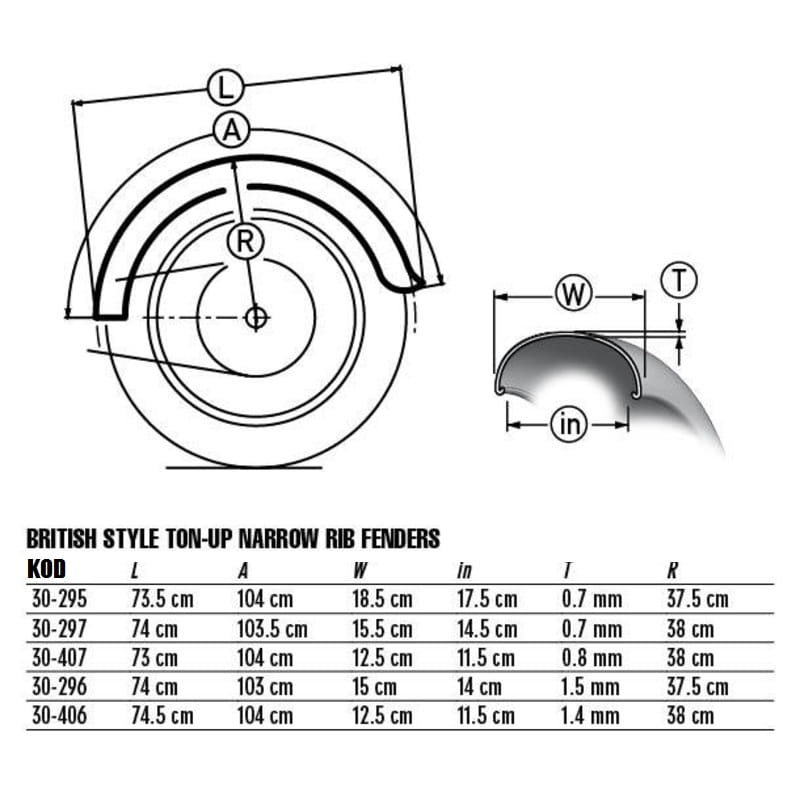 Błotnik "British Style Ton Up" , szerokość 140mm