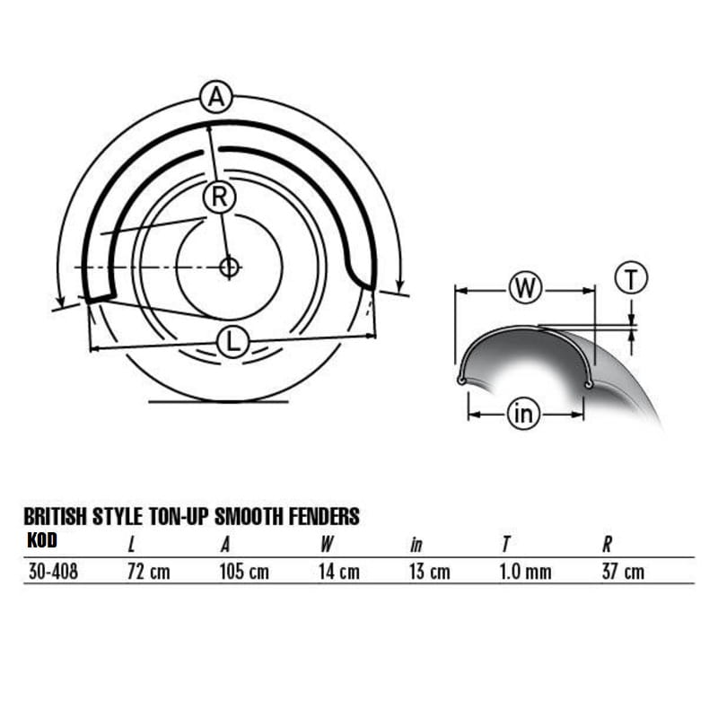 Błotnik "British Style Ton Up" , szerokość 142mm