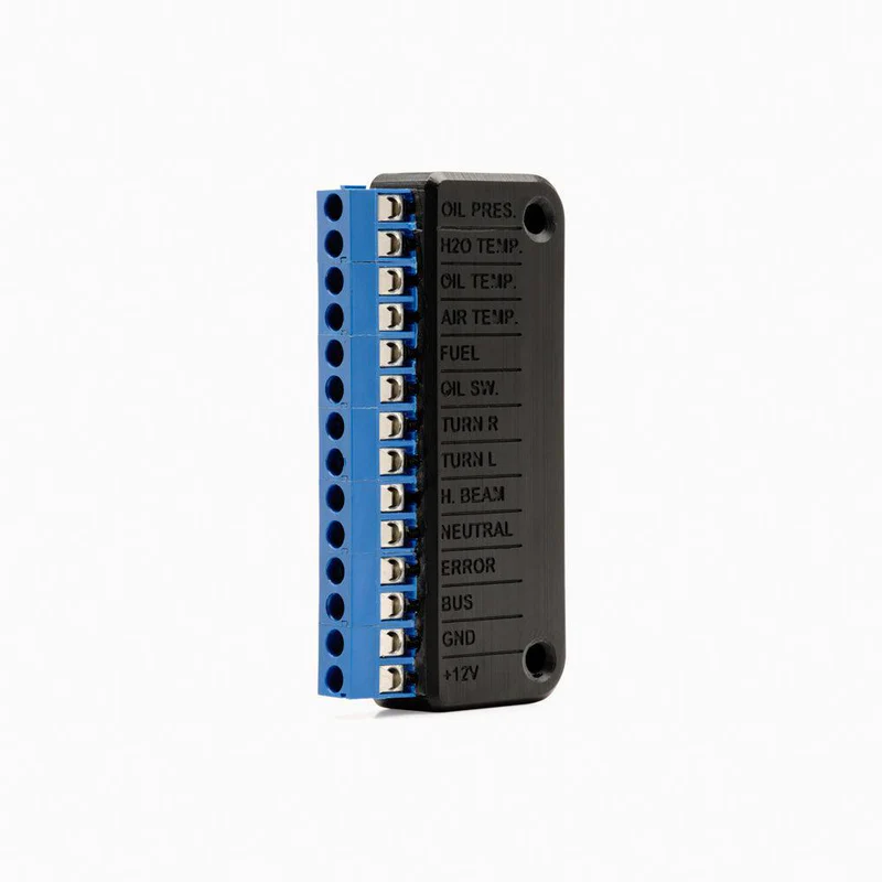 Central connection of all signal cables for indicator lights as well as temperature and pressure sensors. Convenient screw terminals make connection work quick and easy. The small dimensions of the box allow it to be concealed on the vehicle.