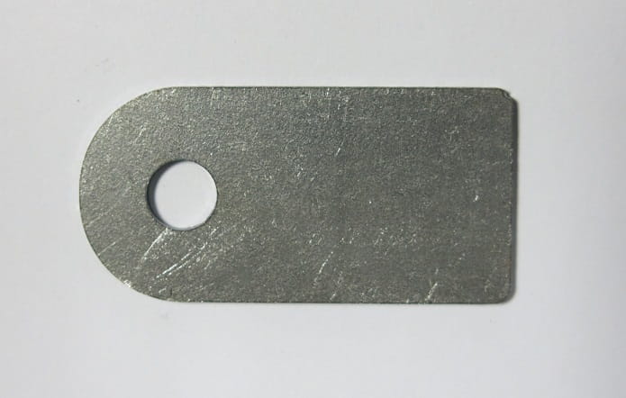 Materiał : stal 2mm Otwór: 8mm Wycięta laserowo, gotowa do wspawania blaszka. Zastosowanie : mocowania kierunkowskazów, błotników, zadupków etc.