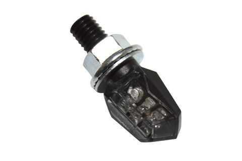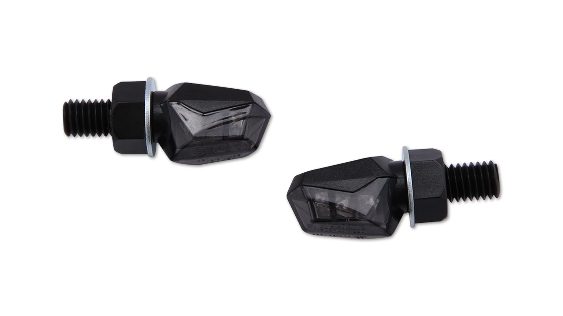 Uniwersalne Mini-kierunkowskazy w pięknym klasycznym stylu z czarną aluminiową obudową i przyciemnianą soczewką. Gwintowany sworzeń: M8 Niezwykle małe, mocno świecące kierunkowskazy. W stanie spoczynku ledwie widoczne, nie psuja bryły motocykla. Produkt posiada homologację. Cena dotyczy pary kierunkowskazów.
