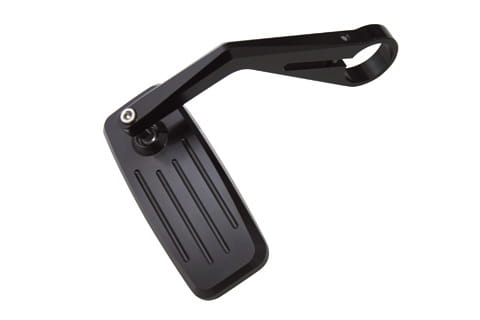 High-quality CNC-milled handlebar end mirrorRectangular shaped fairing mirror made of black anodised aluminium and tinted glass. Suitable for handlebars with an inner diameter of 12 to 21 mm, i.e. for most 7/8 inch and1-inch aluminum or steel handlebars. Can be used for left and right side.