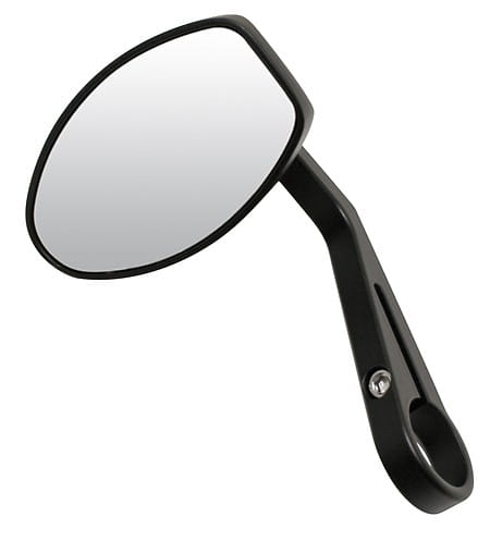 Piękne lustro wykonane z czarnego aluminium. Skos wbudowany w zacisk podkreśla styl wysokiej jakości. Pasuje do kierownicy 1 cala (25,4 mm) i 7/8 cala (22 mm). Montowane na końcówce kierownicy.