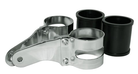 Uniwersalny zestaw wsporników reflektorów montowanych na lagach. Z gumowymi wkładkami kompensującymi średnicę rury.