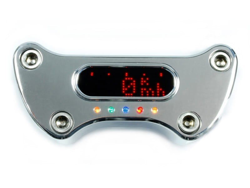 Mocowanie kierownicy zawiera w sobie kontrolki (5szt) i umożliwia montaż licznika Motogadget Motoscope Mini na górnych półkach większości modeli Harley'a .