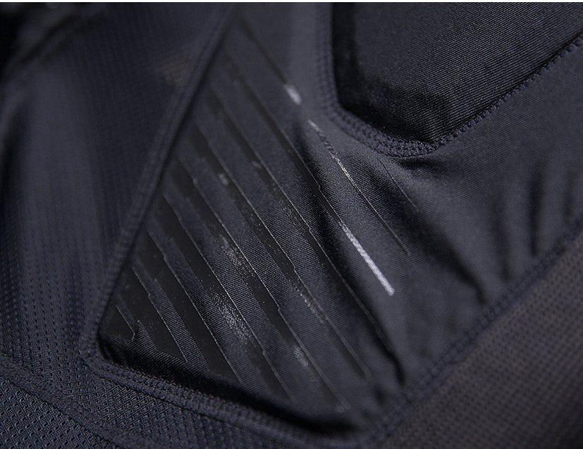 - protektory D30® w najbardziej narażonych strefach (ramiona, łokcie i kręgosłup). Unikalne technologie D3O® zapewniają zarówno zwiększoną ochronę, jak i wszechstronny, elastyczny materiał zapewniający wiele rodzajów amortyzacji wstrząsów i ochrony przed uderzeniami. Zapewniając najbardziej elastyczną i dyskretną ochronę na rynku, D3O® konsekwentnie przewyższa tradycyjne materiały na bazie pianki.