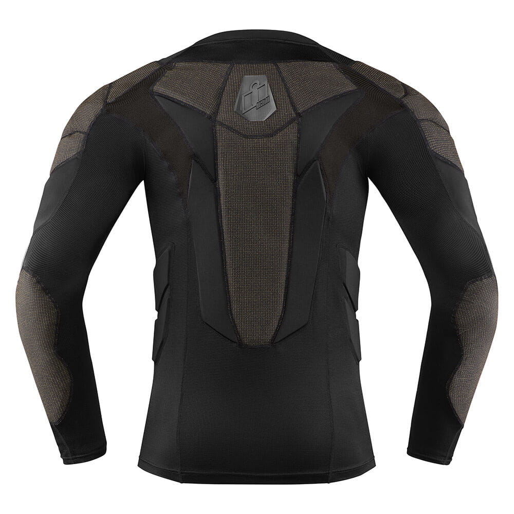 Zbroja Icon Field Armor™ składa się z poliestrowej, rozciągliwej siateczki i wzmocnień z włókna DuPont™ Kevlar® i wkładek D3O®. Zaprojektowana do noszenia pod bluzami, kurtkami, jerseyem motocyklowym, zapewnia dodatkową ochronę motocyklową. Jest wygodna i nie ogranicza pracy ciała podczas jazdy.