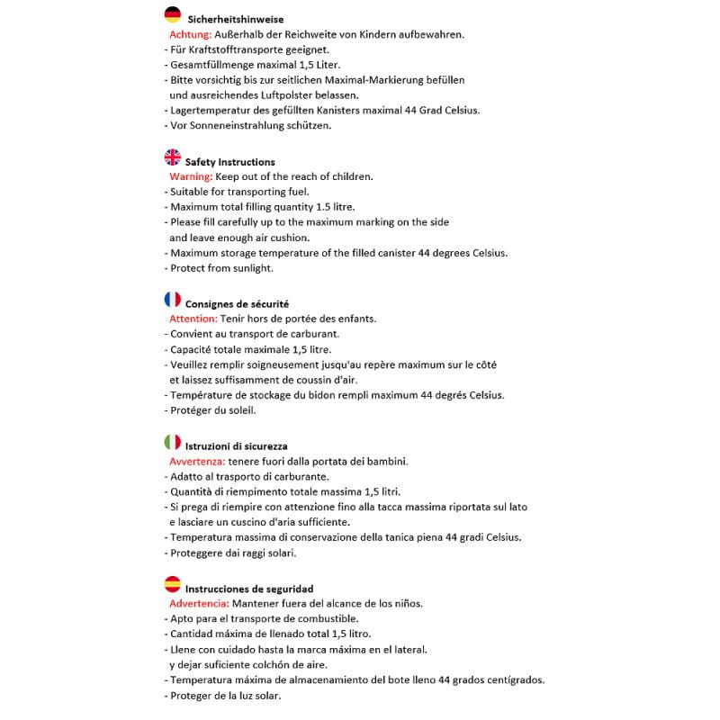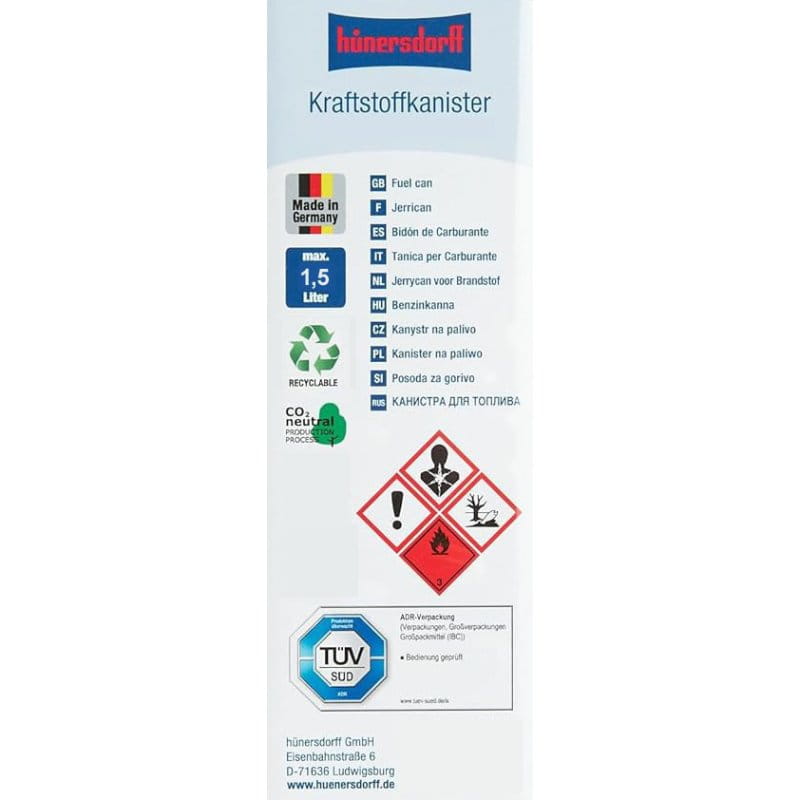 - FuelFriend 1,5L HDPE z dopuszczeniem UN zgodnie z ADR/GGVSEB do transportu ładunków niebezpiecznych