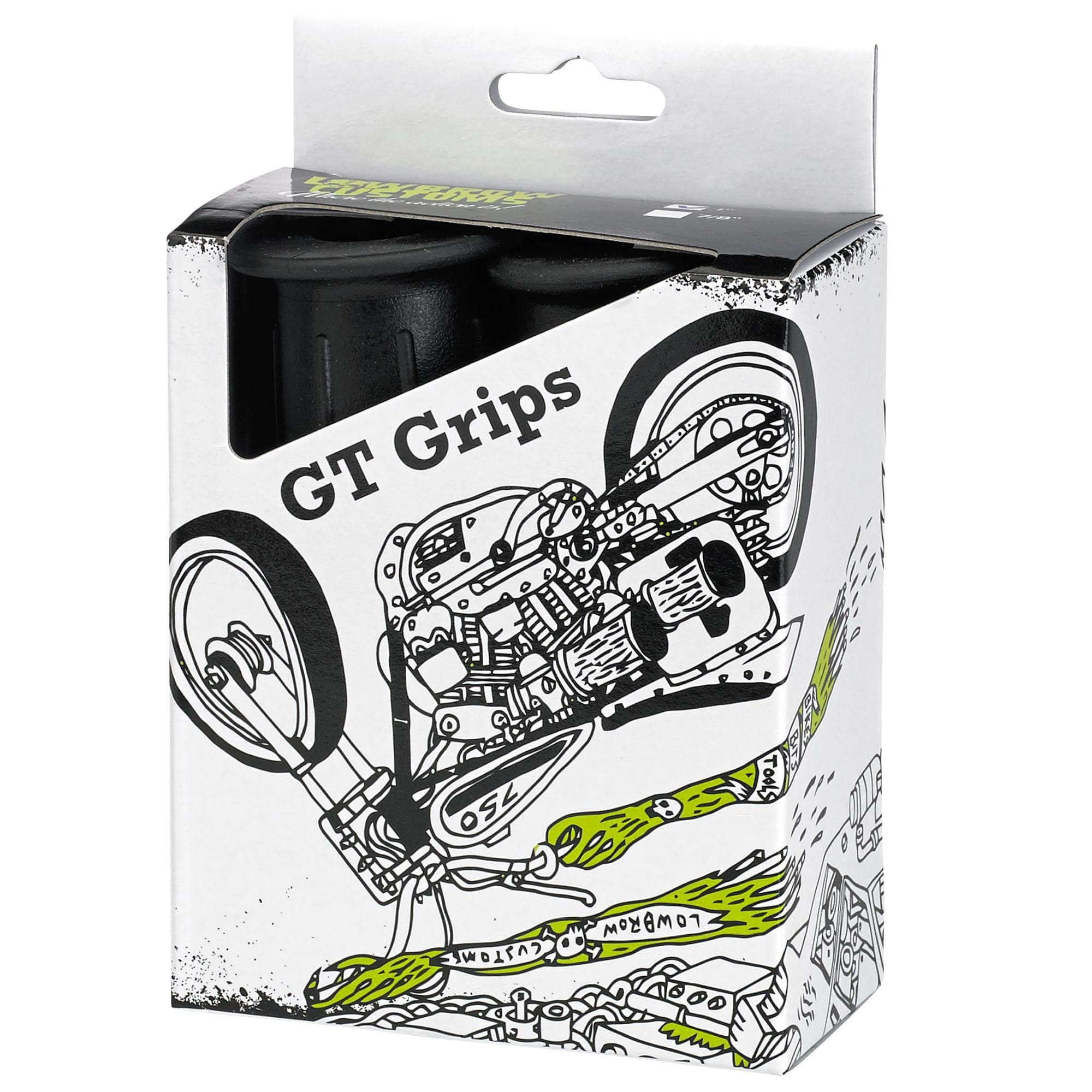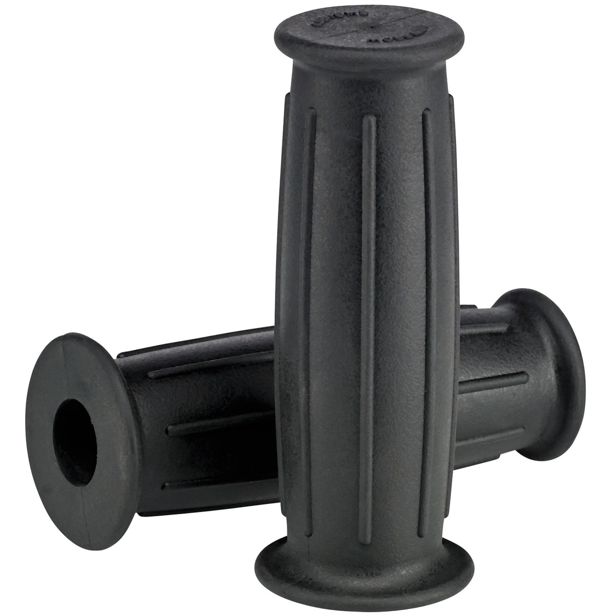 Black, for 1 inch handlebars. If timeless design and bold colors are your thing, our GT Grips may be just your speed. Injection molded Krayton rubber for durability and comfort, and guaranteed to feature authentic classic styling, inspired by Gran Turismo motorcycle grips. GT Grips measure 5" long sold per pair. It is important to choose the proper size grips for your motorcycle. Grips are available in 1 inch (the size needed for all Harley-Davidsons and other 'cruiser' style motorcycles) as well as 7/8 inch (common on many vintage British, European and Japanese motorcycles such as Triumph, Honda and Yamaha). Please note that any pair of motorcycle grips has two different inside diameters. The grip for the left side (as if you were sitting on the bike) of the handlebar has a smaller diameter, and the right side grip has a larger inside diameter to fit over your throttle tube. Grips are manufactured to have a tight fit, you don't want one sliding off while taking a corner or twisting the throttle! They are easy to install using a bit of WD-40 to help get them in place.