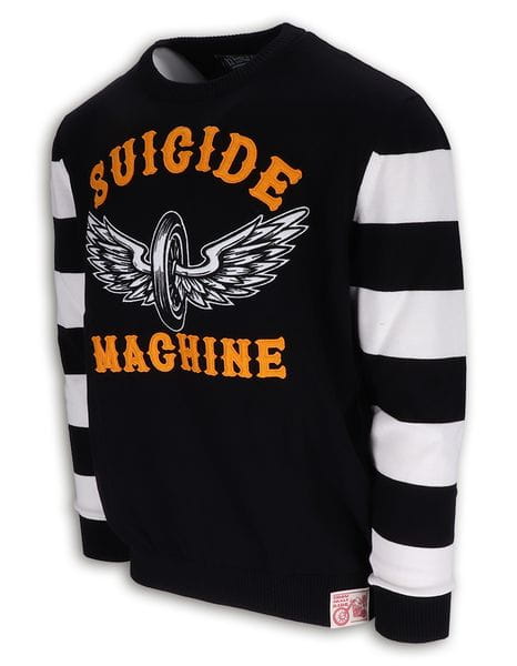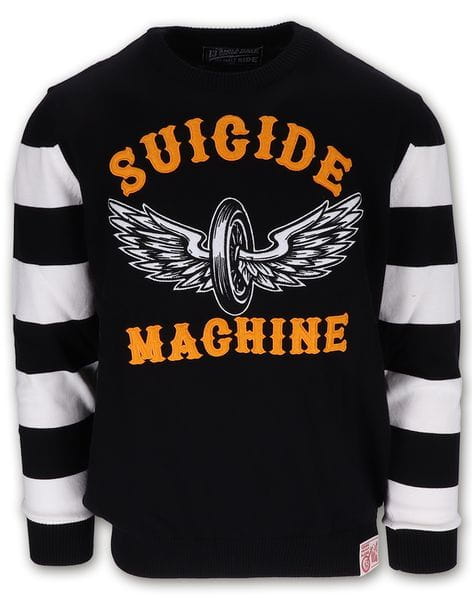 13 1/2 Outlaw Suicide Machine Sweater motocyklowy sweter w biało-czarne paski 13 1/2 Outlaw Suicide Machine Sweater chopper harley custom