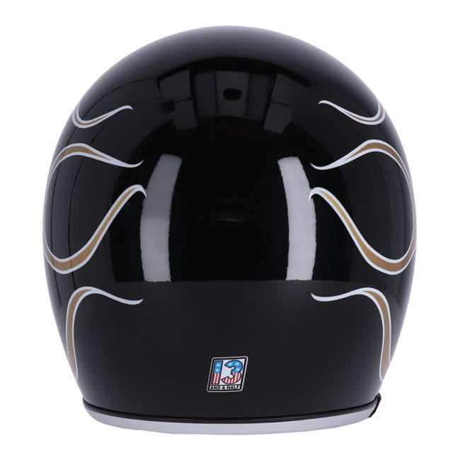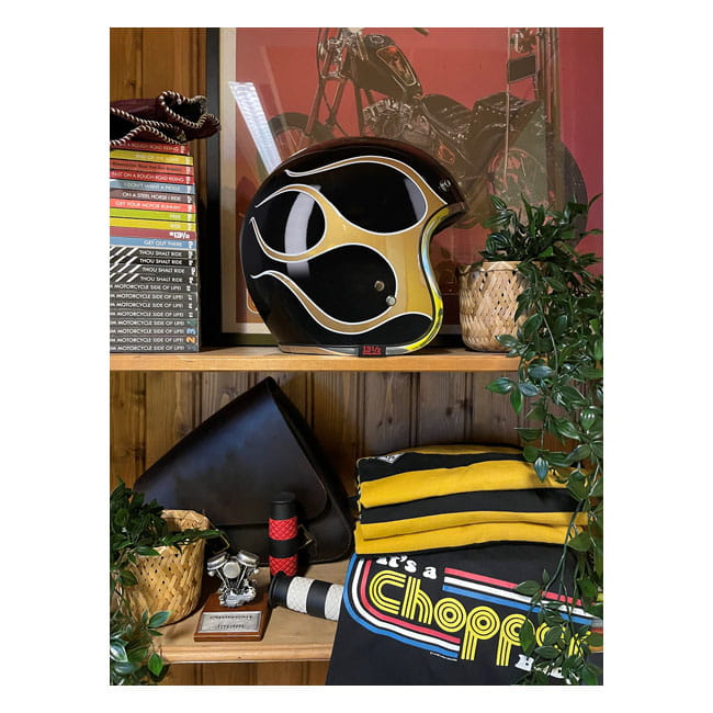 13 1/2 Skull bucket helmet flames gold otwarty kask motocyklowy z płomieniami na choppera harleya klasyczny kask mototcyklowy otwarty z homologacją cafe racer bobber choper harley style