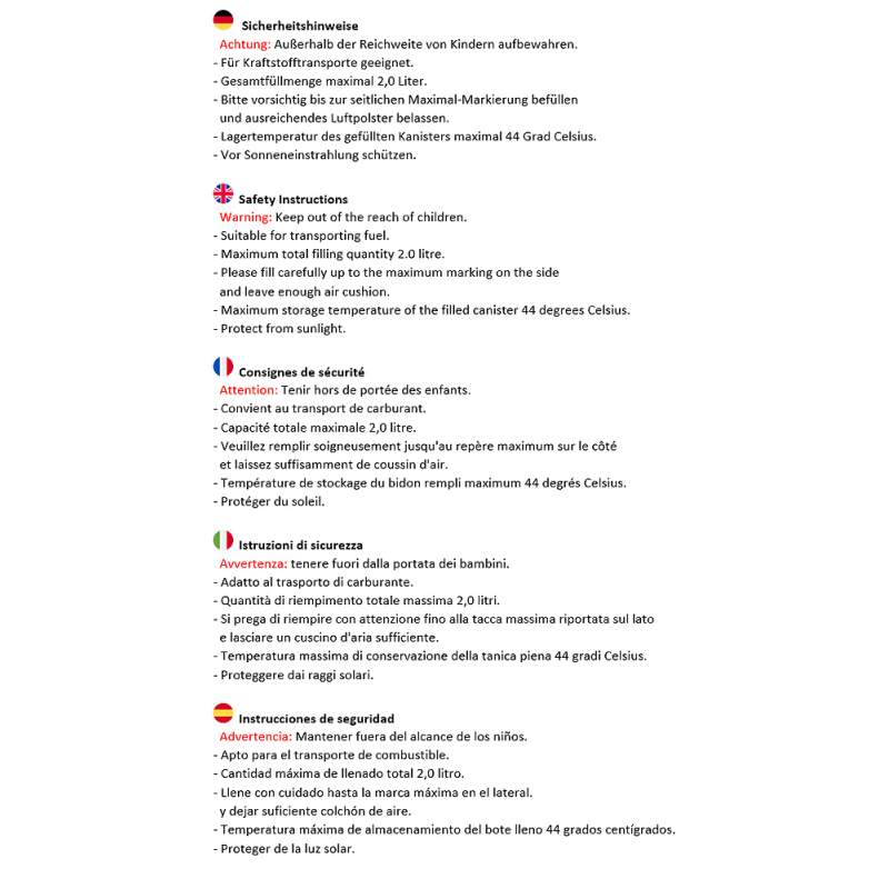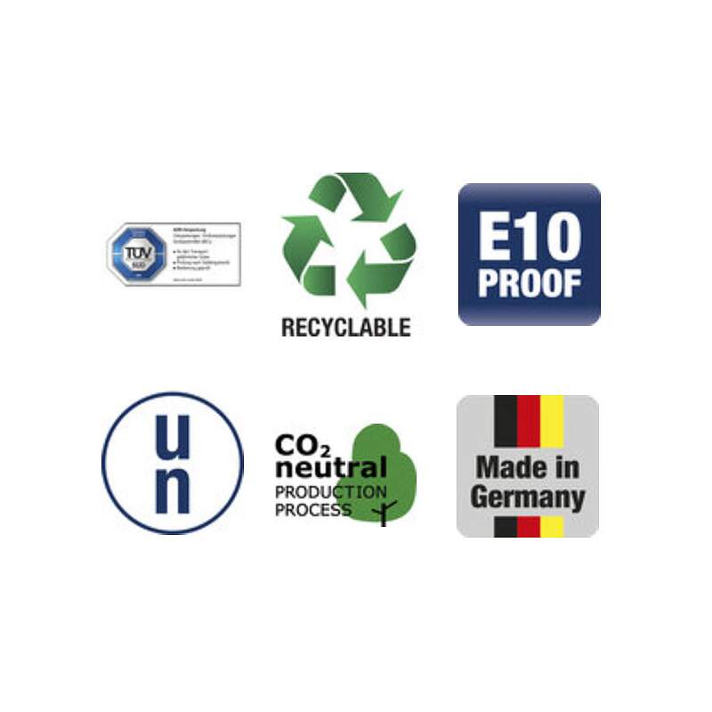 - Nadaje się do olejów, oleju napędowego, benzyny, paliwa E10, nafty, etanolu, AdBlue, mocznika i paliwa Aspen.