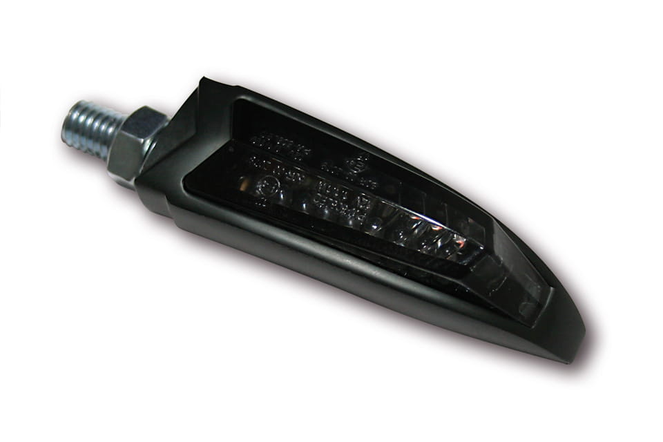 LED indicator/parking light unit in a high-quality, black aluminum housing with tinted glass, E-tested.