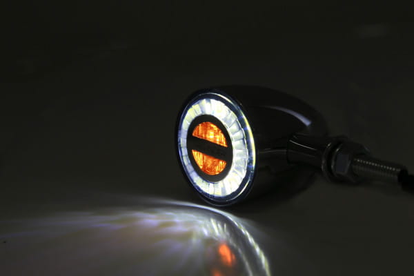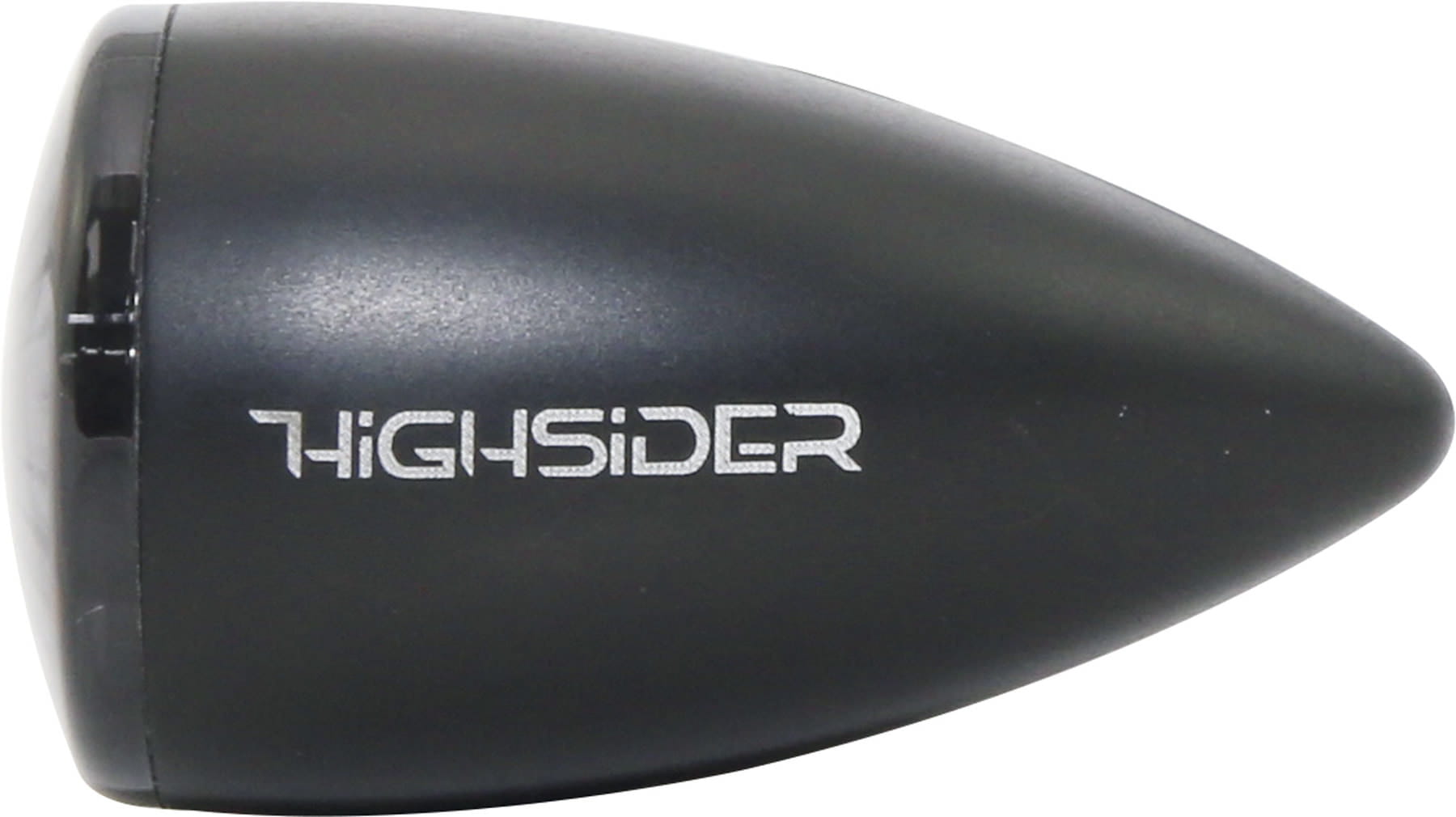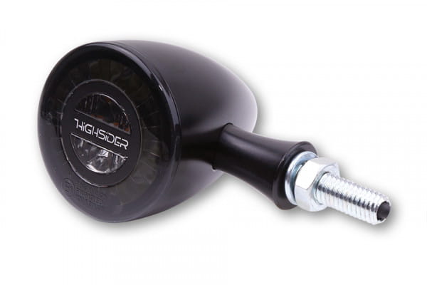 HIGHSIDER ROCKET BULLET LED turn signal / position light with aluminium housing and tinted glass.