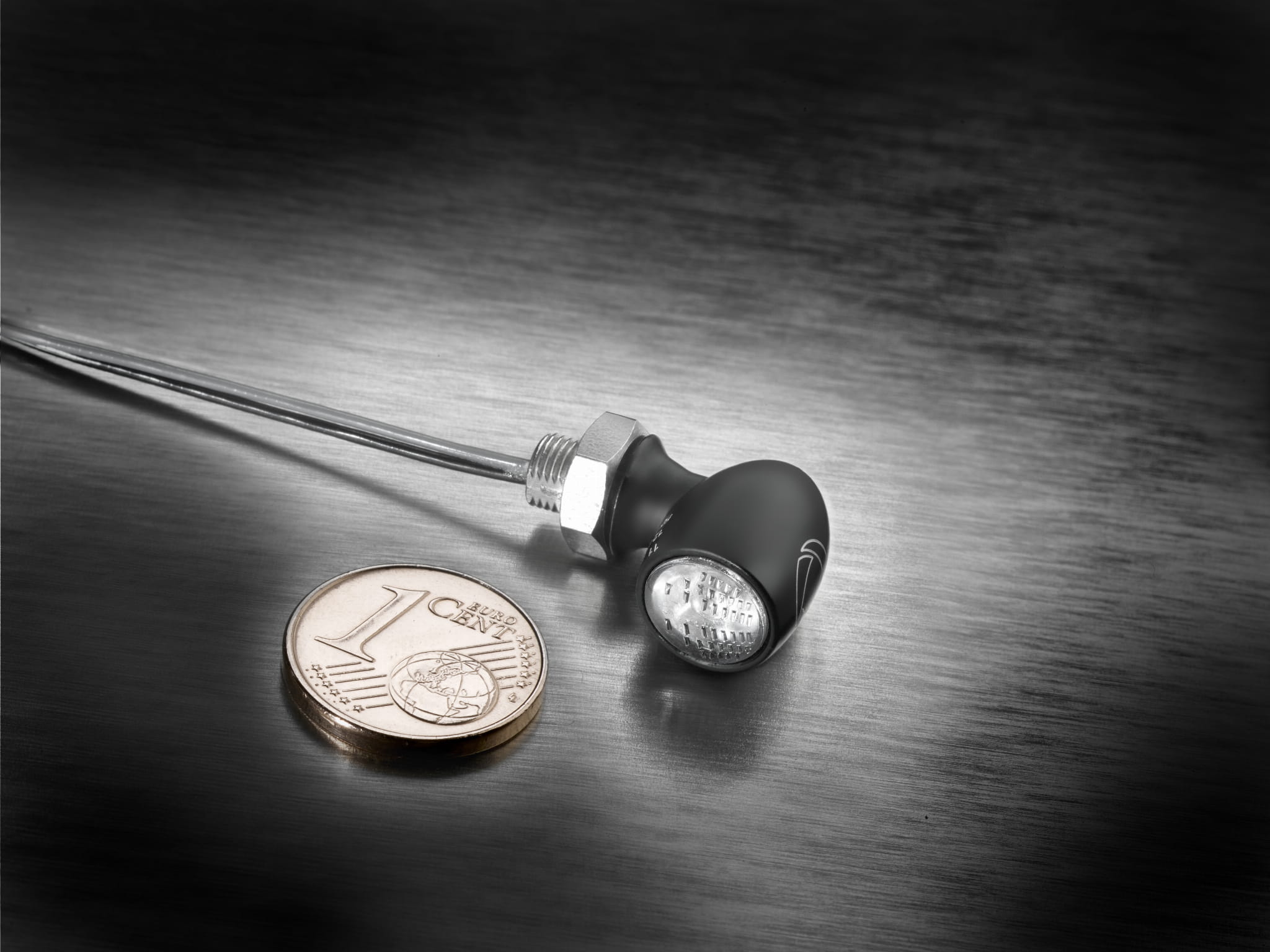Firma Kellermann zrobiła coś niemożliwego, stworzyła serię kierunkowskazów Atto®. Charakteryzują się kierunkowskazy wyjątkowo małą obudową (porównywalne do 1 grosza) dając przy tym spektakularnie jasne światło. Kompaktowa i świecąca moc. Śmiało możesz użyć go w każdym swoim projekcie. Kierunkowskaz przez swój zgrabny i mały kształt pasuje zarówno do cafe racerów, scramblerów, chopperów, bobberów jak i do innych motocyklowych wydumek. W rzeczywistości wszystkie kierunkowskazy z serii Atto®zasadniczo znikają na motocyklu. Stają się niewidoczne na pierwszy rzut oka. Jednak gdy włączysz go - jego światło świeci mocno i jest widoczne na drodze.