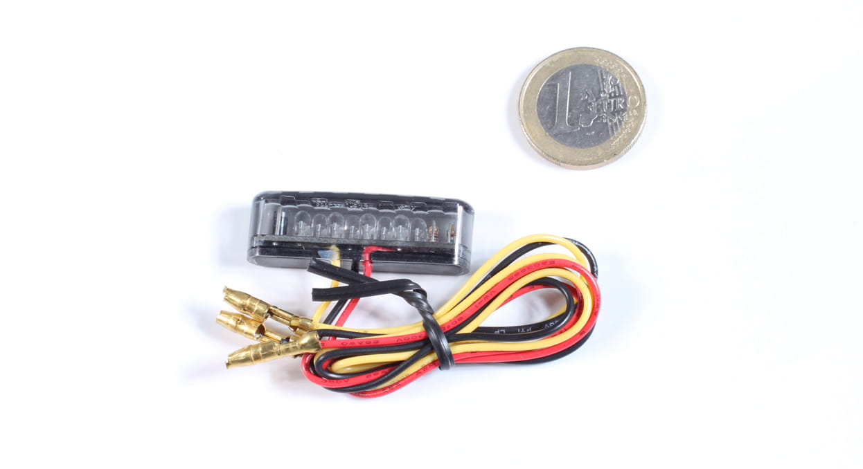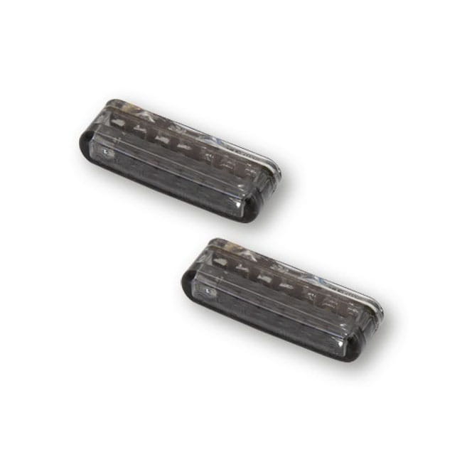 Funkcjonalne małe kierunkowskazy LED ze zintegrowanym światłem tylnym . Korpus wykonany z tworzywa sztucznego w kolorze przydymionym / smoke.