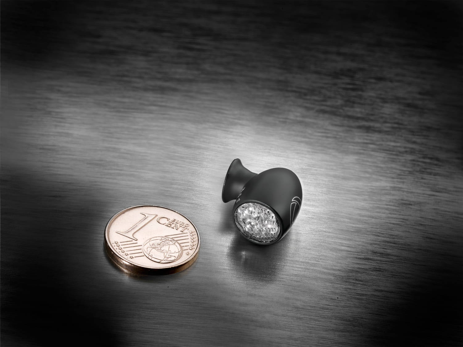 A 3in1 sensation as it hasn’t been seen before: The Atto® DF is the latest and by far most spectacular member of Kellermann’s successful Atto® series! The probably world’s smallest street legal indicator is now available in triple function with an integrated rear and brake light. Behind the extremely small yet sensationally bright Atto® DF lays a multifunctional all-rounder: At the rear it is visually almost completely disguised with a light surface, which would fit four times on a 1 Cent coin! In result the rear of the motorcycle can be designed as clean and individual as never before. However, in action the Atto® DF shines with an intensity which has made Kellermann products legendary – it’s not the size but the illumination power that counts. Indicators, rear and brake light warn with an uncompromising intensity, clearly signalling the following traffic to keep its distance. Kellermann’s well-known HighPower LED technology** and EXtranz® - Extreme Optical Transparency Technology manage an optimized light channelling through a smart system of lenses and reflectors and thus enabling this combination of sensational brilliance and minimal size. The Atto® DF can be combined with various other series e.g. Atto® or Bullet 1000®. As the complete electronics are in the casing the Atto® DF allows for a significant reduction in weight.