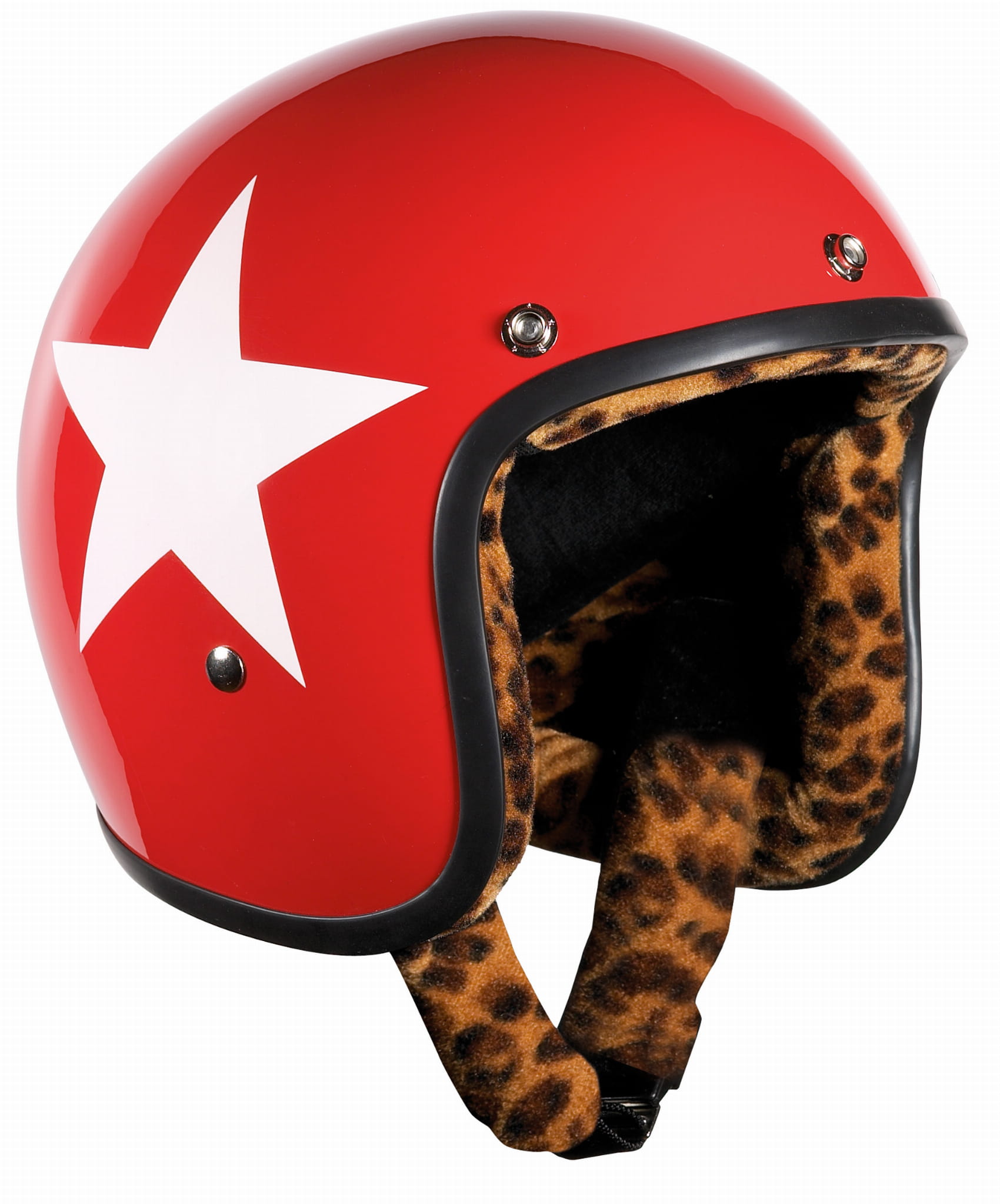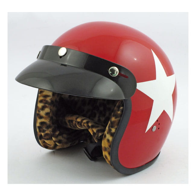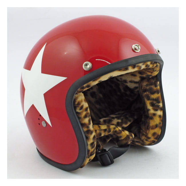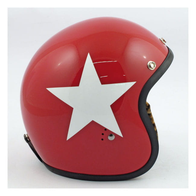 BANDIT HELMET STAR RED W/WHITE KASK MOTOCYKLOWY OTWARTY CZARWONY Z Z PANTERKĄ CAFE RACER