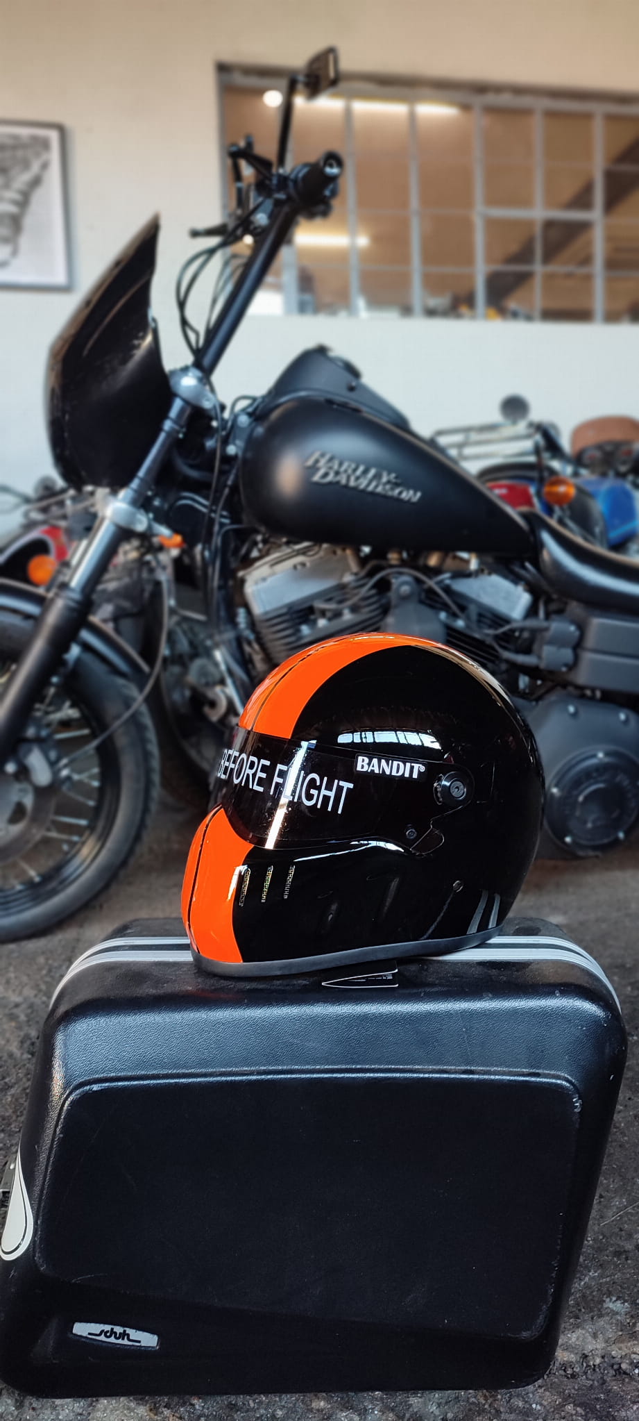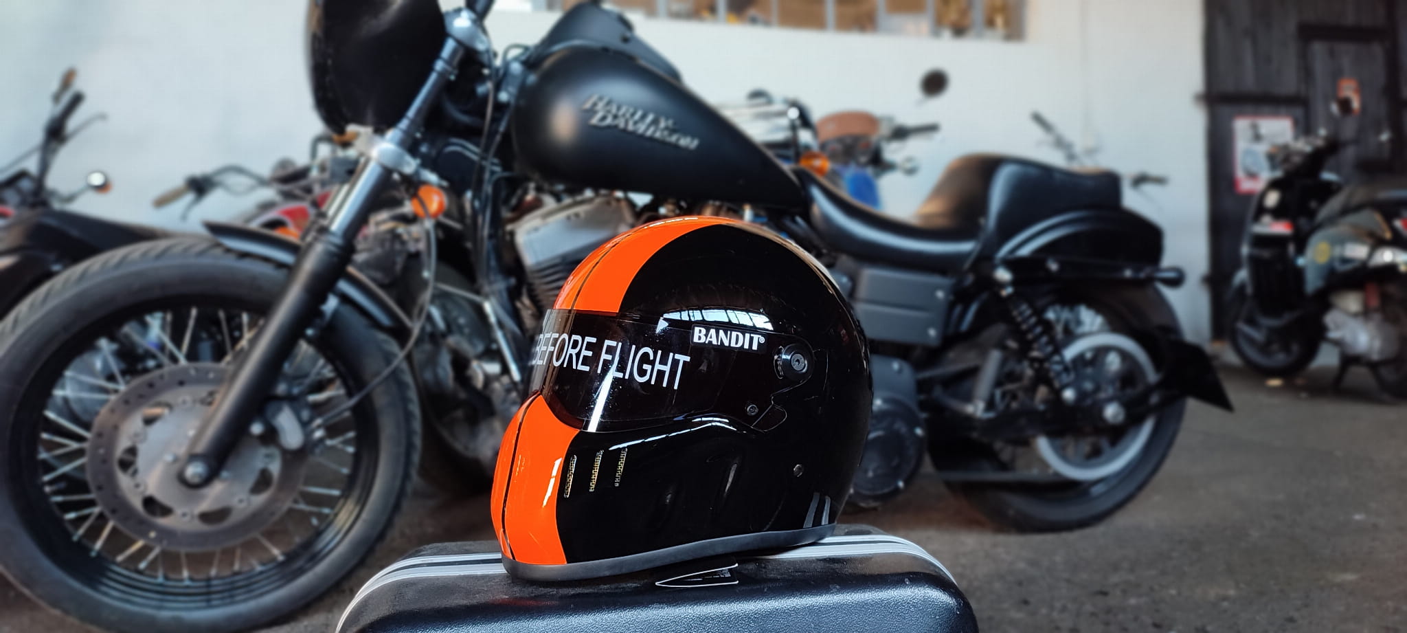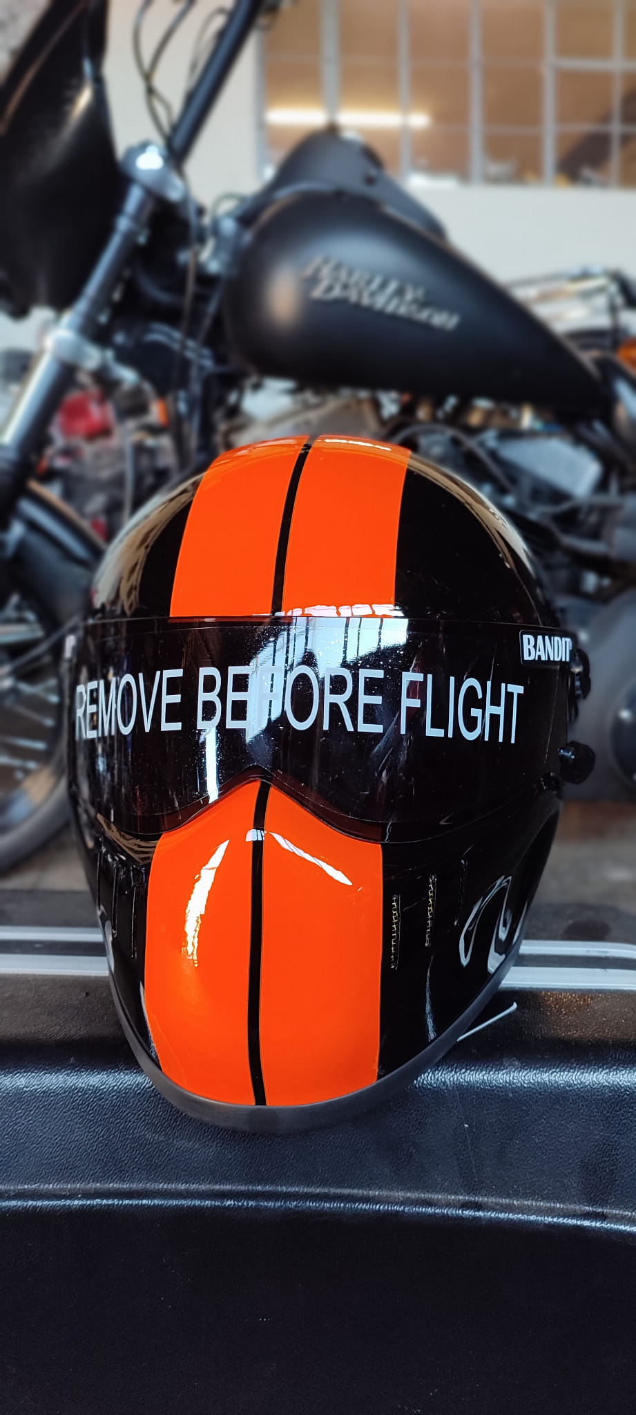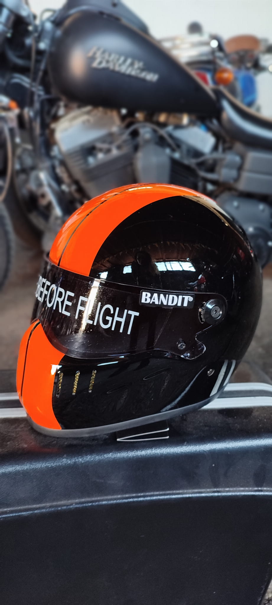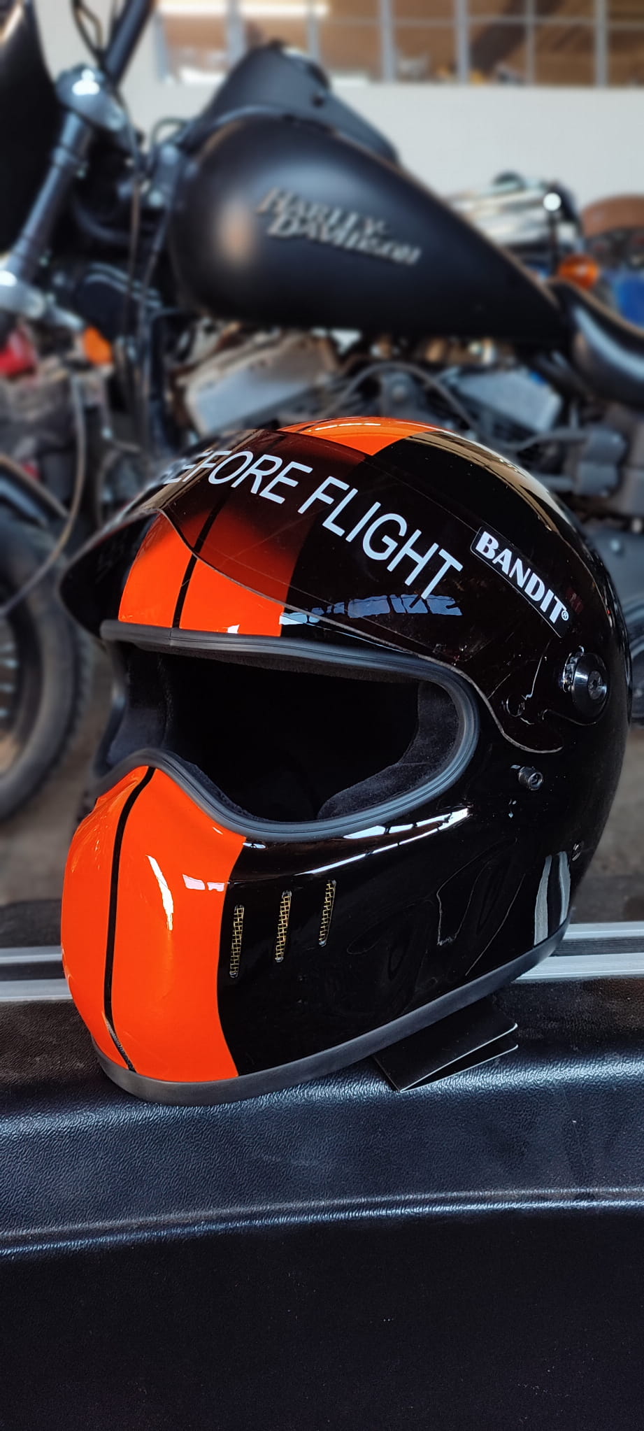 BANDIT XXR RACE DESING INTEGRALNY KASK MOTOCYKLOWY BOBBER HARLEY POMARAŃCZOWO-CZARNY KASK