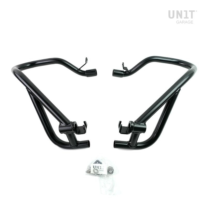Gmole bezproblemowo integrują się z ramą R nineT i zapewniają bardzo dobrą ochronę w razie przewrotki. Wykonane ze stali pomalowanej farbą proszkową o wysokiej odporności. Łatwe w instalacji, w komplecie z tulejami dystansowymi i śrubami. Większość prac konserwacyjnych przy motocyklu można wykonać bez ich demontażu.