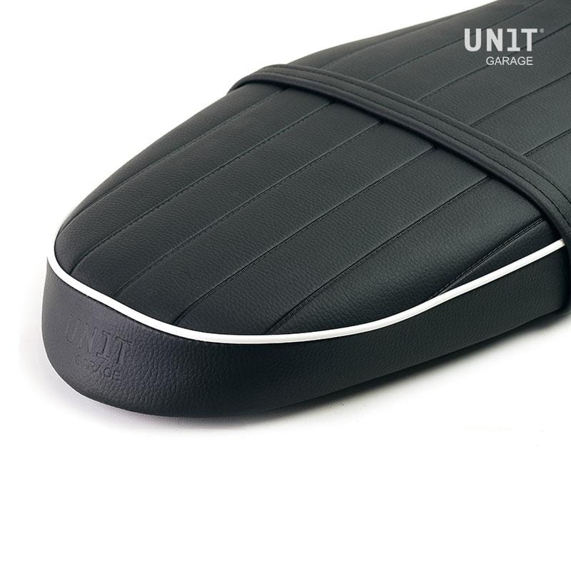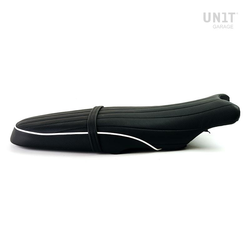 Dwumiejscowe siodło wykonane we Włoszech z ręcznie przeszywanymi bawełnianymi nićmi i wykończeniem Sky. O wiele wygodniejsze od oryginału zarówno dla kierowcy, jak i pasażera. Można go zamontować bez modyfikacji motocykla, ponieważ jest zaczepiony i zamocowany w tej samej pozycji, co oryginał.