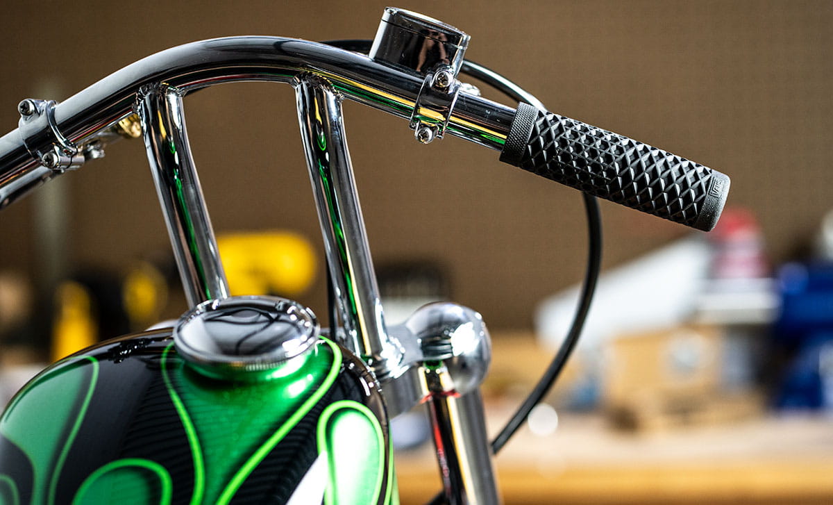 Klasyczne gumowe manetki na kierownicę 22mm. (Dostępne również w wersji 1" = 25,4 cm). Jedna manetka na rolgaz ma szerszy otwór, druga węższy. Idealnie nadaję się do każdego motocykla w klimacie oldschool :