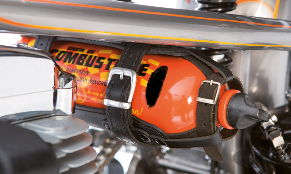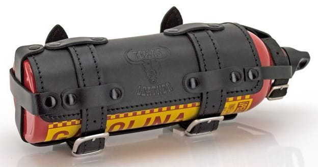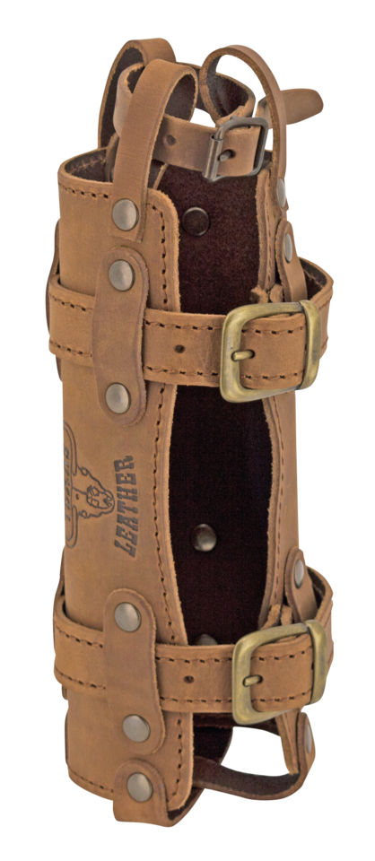 BRĄZOWE SKÓRZANE MOCOWANIE DO BUTELKI NA PALIWO DO MOTOCYKLA