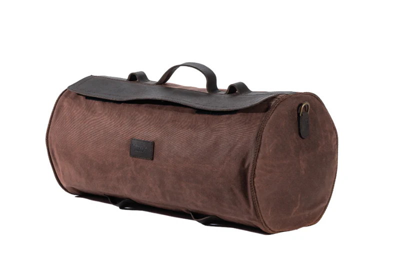Rozkoszuj się kunsztem torby BSA Roll Bag, starannie ręcznie wykonanej z wytrzymałego brązowego lub czarnego woskowanego płótna bawełnianego. Jej odporność na warunki atmosferyczne sprawia, że pięknie się starzeje z każdym użyciem.