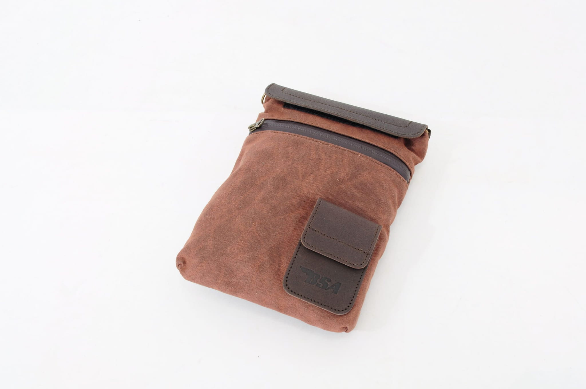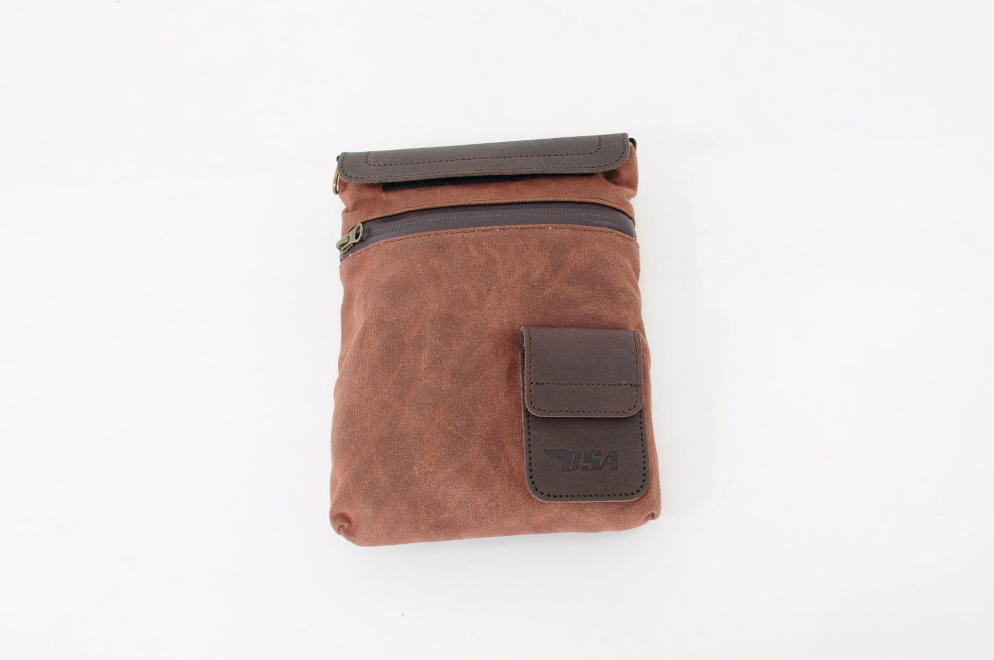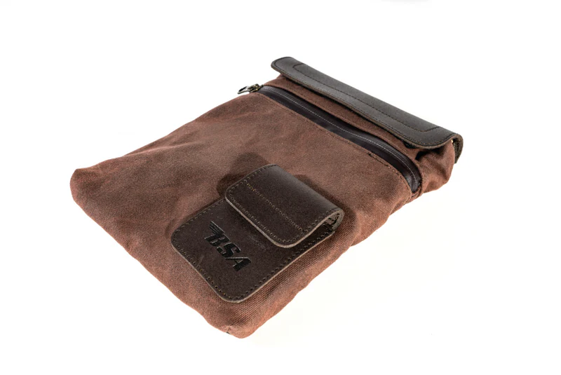 Wykonana z brązowego lub czarnego woskowanego płótna bawełnianego i wykończona skórą licową torba na zbiornik BSA jest odporna na warunki atmosferyczne i utrzymuje zawartość w suchości dzięki klejonym woskowanym zamkom błyskawicznym. Torba na zbiornik paliwa jest zabezpieczona czterema mocnymi magnesami narożnymi zamkniętymi w wyściełanym etui, co zapewnia bezpieczne dopasowanie do zbiornika w dowolnym wybranym miejscu.