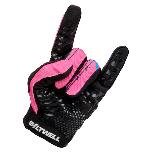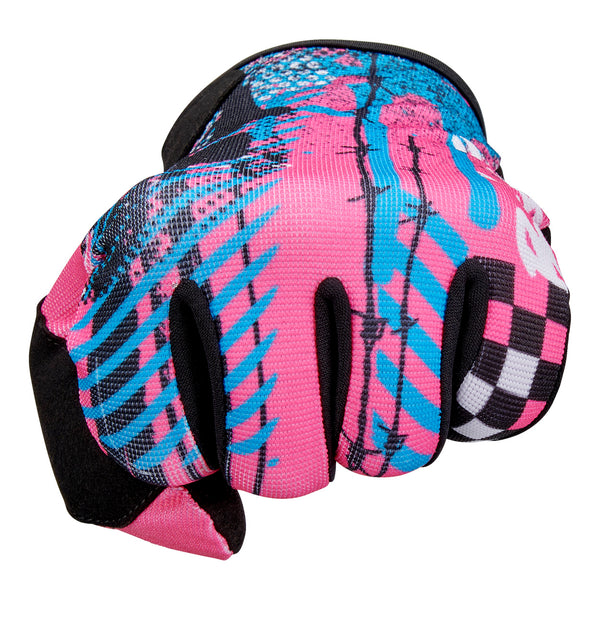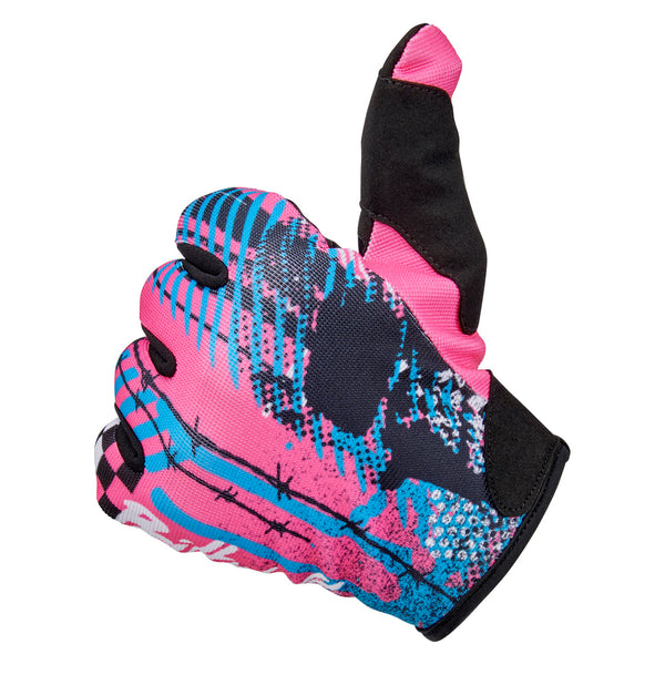 Inspired by the super comfortable, stretch synthetic gloves favored by motocross pros, Ridgecrest takes our “less is more” aesthetic to its logical extreme. We didn’t choose its minimalist construction just to meet a price point. Ridgecrest’s single-layer synthetic suede palm, Lycra finger gussets, and polyester back and thumb panels are crafted to follow the contours of your hands for all day riding comfort. Colorful graphics are sublimated to avoid adding bulk or compromising dexterity. Unique, rubberized traction graphics in the palms vary by glove style. Available in six sizes from S to 3XL.