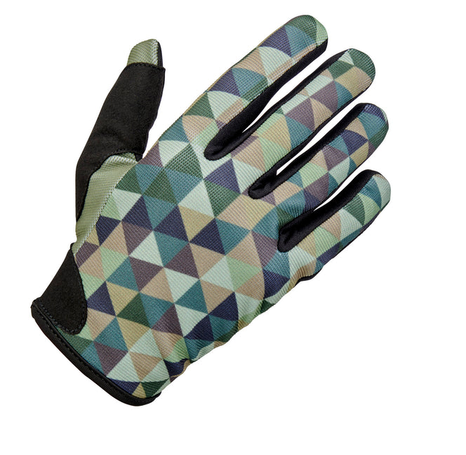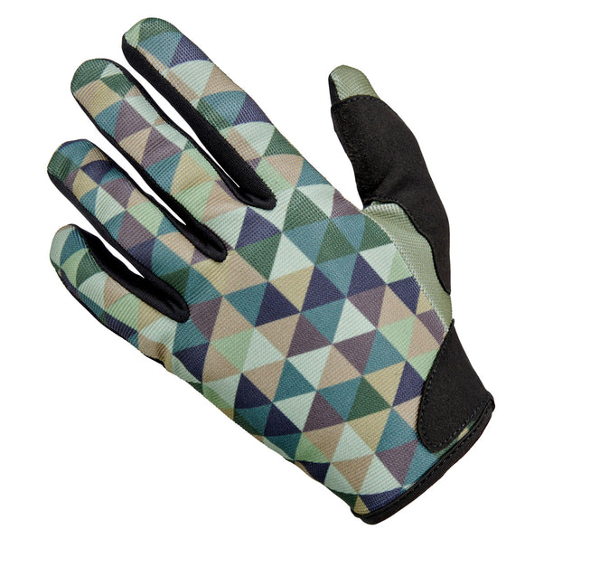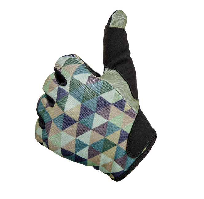 Inspired by the super comfortable, stretch synthetic gloves favored by motocross pros, Ridgecrest takes our “less is more” aesthetic to its logical extreme. We didn’t choose its minimalist construction just to meet a price point. Ridgecrest’s single-layer synthetic suede palm, Lycra finger gussets, and polyester back and thumb panels are crafted to follow the contours of your hands for all day riding comfort. Colorful graphics are sublimated to avoid adding bulk or compromising dexterity. Unique, rubberized traction graphics in the palms vary by glove style. Available in six sizes from S to 3XL.