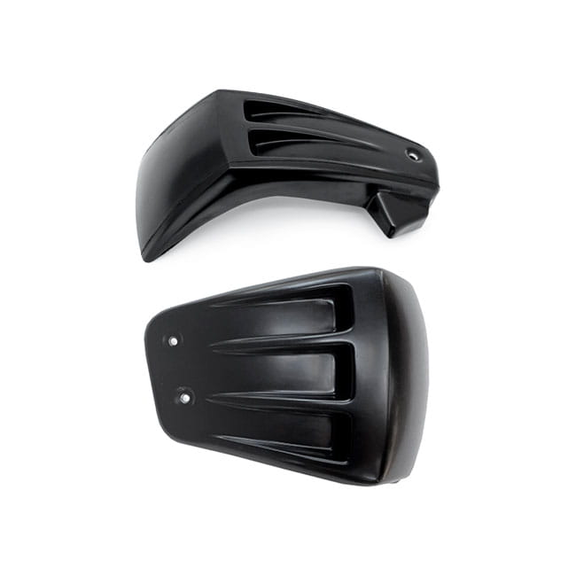 With approval. Fits Softail shock absorbers without preload adjustment knob. This side panel kit can be used in combination with Killer Custom's 'Avenger' M8 Softail rear fender kit (921574 and 955107), but also on their own they'll give your bike the true Killer Custom touch. Made of hand-laid unpainted black gel coated fiberglass that is very stiff, strong, straight and light. Easy bolt-on installation like original ones, just pop in place and you ready to go.
