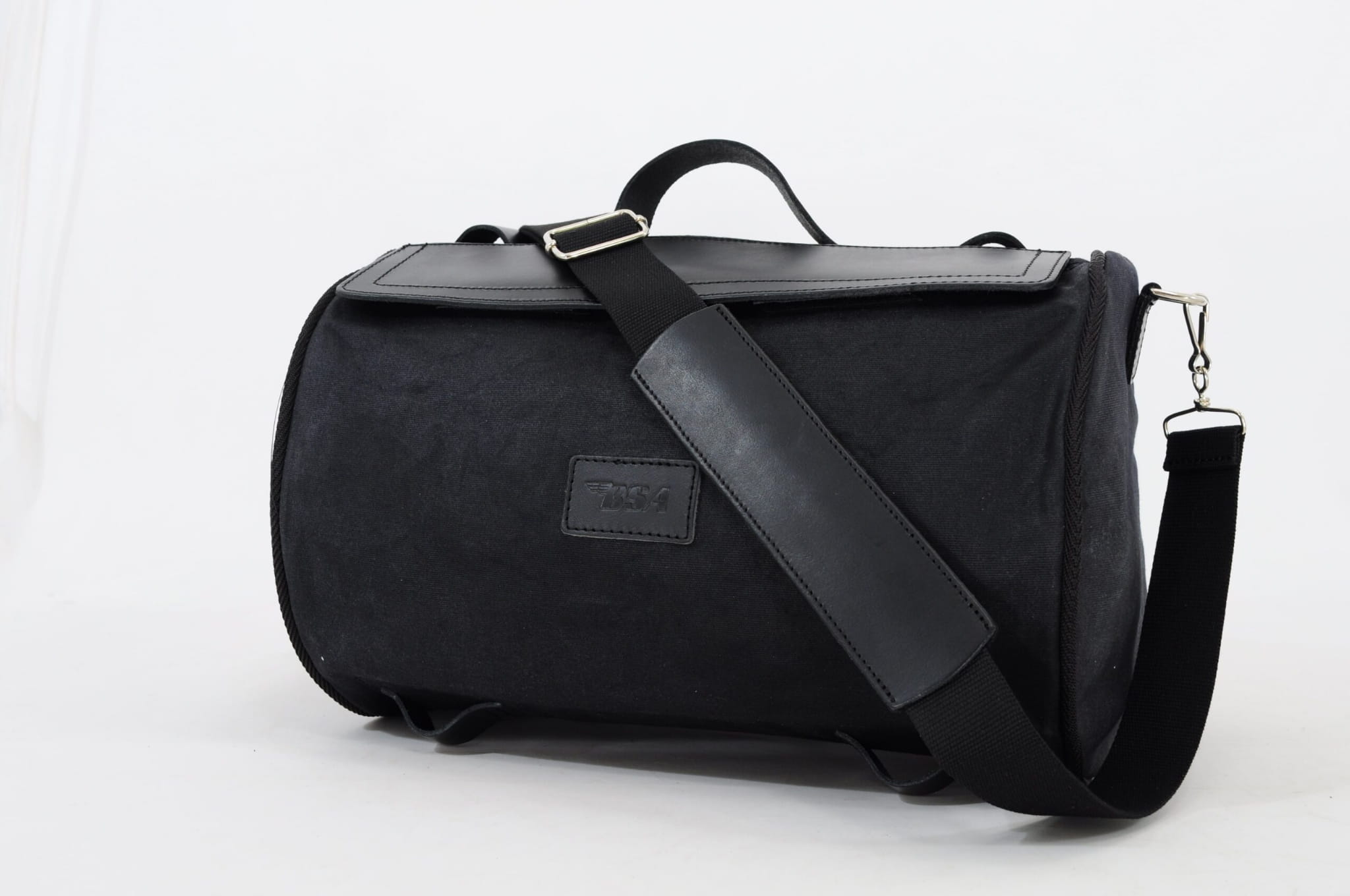 Ręcznie wykonana z wytrzymałego brązowego lub czarnego woskowanego płótna bawełnianego torba BSA Roll Bag jest odporna na warunki atmosferyczne i będzie się pięknie starzeć wraz z użytkowaniem.