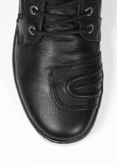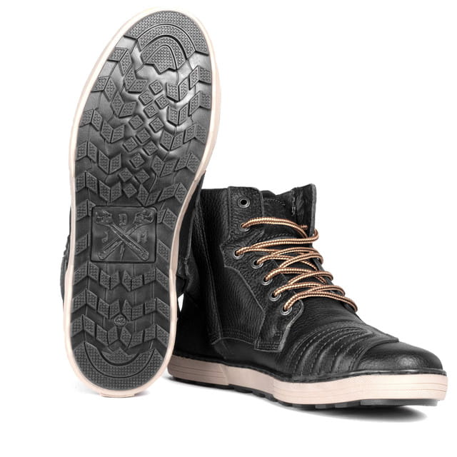 Wszystkie buty motocyklowe mają funkcję "zatrzymywania wody" (jak buty trekkingowe i turystyczne), tj. język ma za zadanie zapobiegać szybkiemu przenikaniu wody do buta przy sznurowadłach. "Łatwe wejście" do buta za pomocą zamka błyskawicznego pozwala motocyklistom szybko i łatwo założyć but i zdjąć go bez odpinania dla zwiększenia komfortu. Odporna na olej, antypoślizgowa podeszwa jest również standardem. Szczegóły, takie jak logo John Doe wytłoczone ze skóry na kostce lub metalowy emblemat JDM na zakładce, dopełniają klasyczny wzór naszych tenisówek "Shifter".