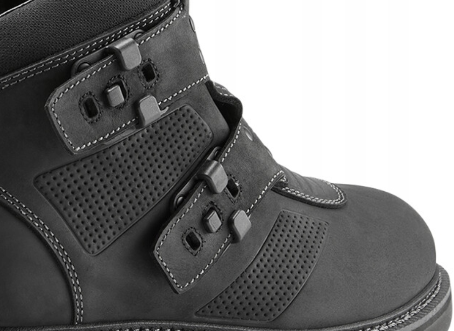 - Wodoodporna skórzana cholewka ze wzmocnionymi nylonowymi klamrami