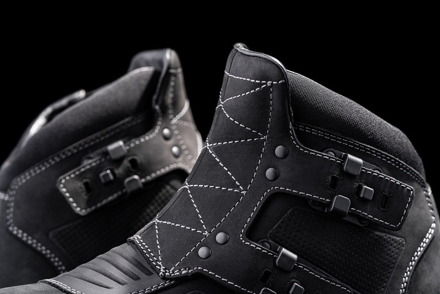 Water-resistant leather upper with reinforced nylon buckles