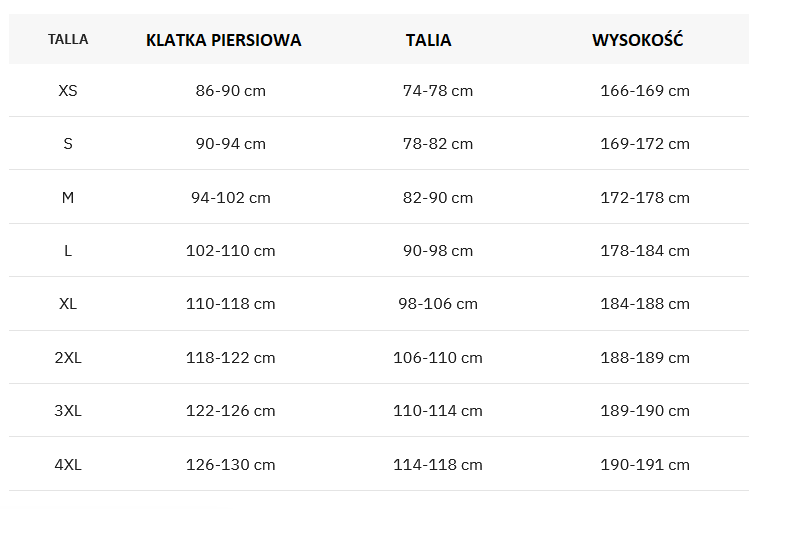 - Możliwość regulacji w talii, ramionach i szyi.
