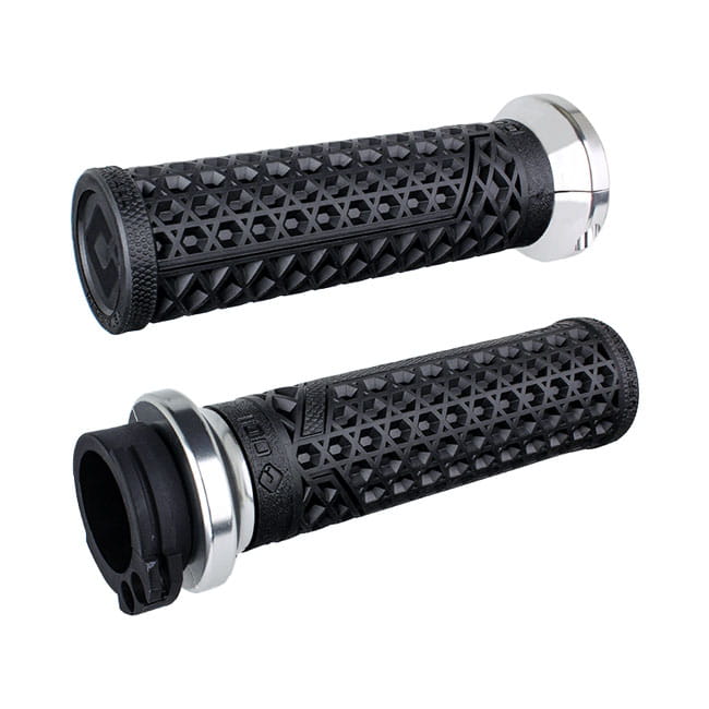System VANS V-Twin Lock-On Grip System jest wyposażony w klasyczne wzory podeszwy Vans® o strukturze wafla, które zapewniają niesamowite wrażenia z jazdy. Wbudowany w uchwyt o średniej średnicy, który zapewnia niesamowitą przyczepność dłoni, a jednocześnie zapewnia dodatkowe tłumienie drgań. Każda para uchwytów jest skonstruowana w firmie ODI przy użyciu opatentowanych mieszanek zapewniających spójne wyczucie i wyjątkową kontrolę w każdych warunkach. Dumnie wyprodukowane w USA przez ODI.