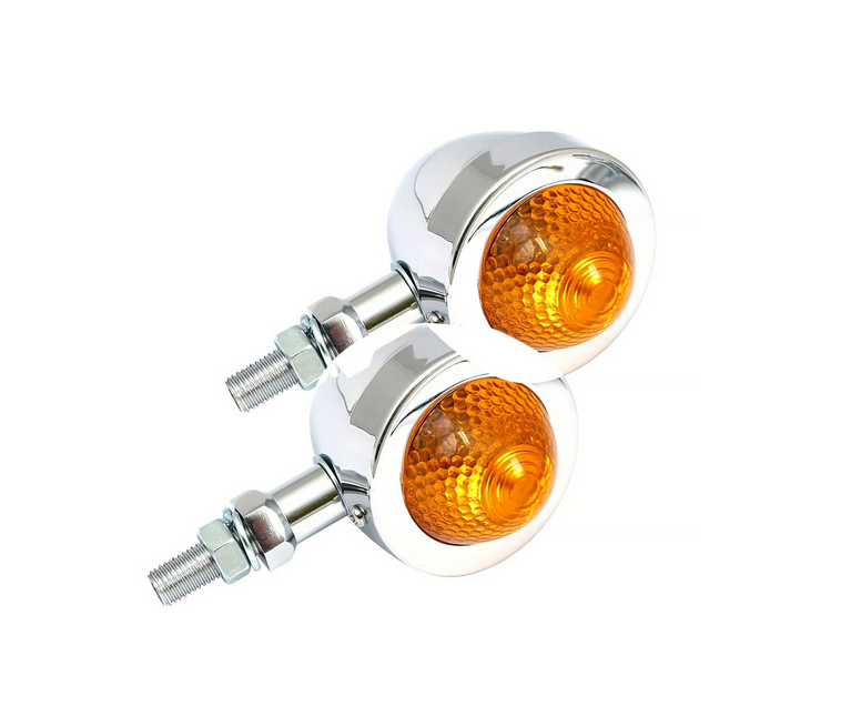 Chromowane kierunkowskazy z pomarańczową soczewką Bullet turn signals
