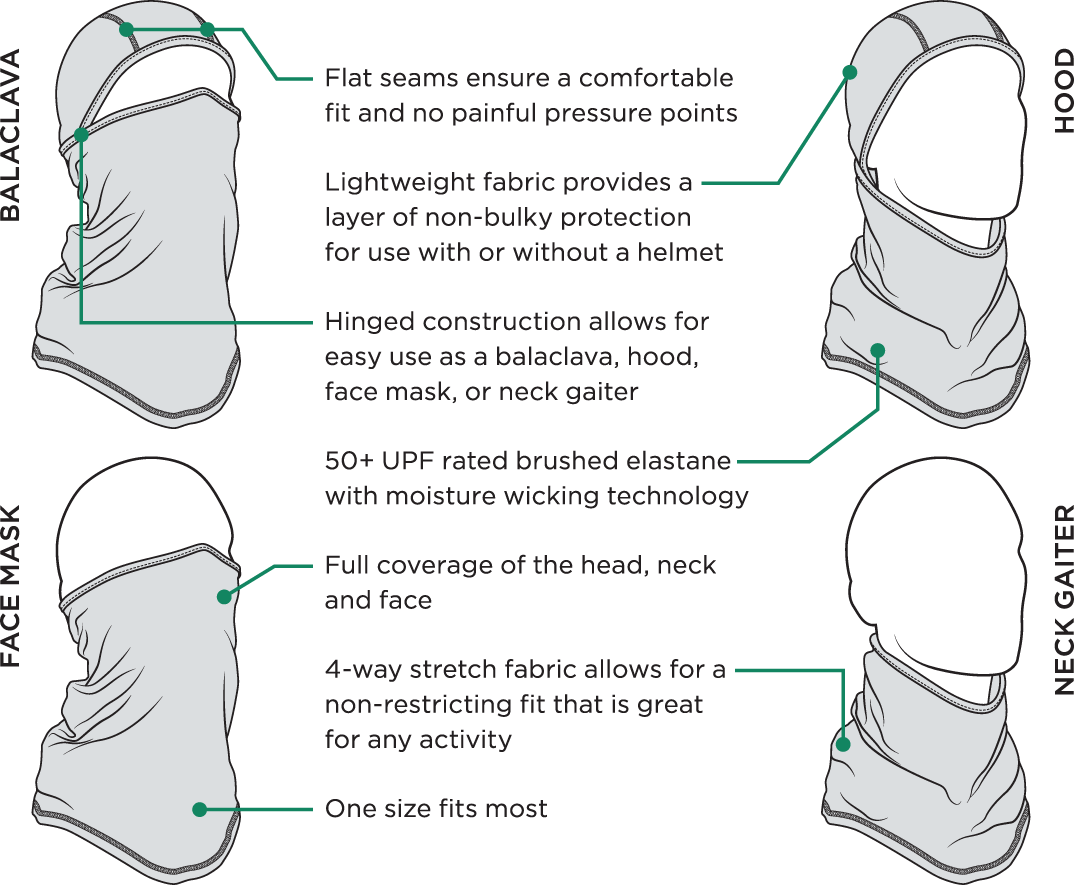 Uniwersalna kominiarka typu „wszystko w jednym”, maska na twarz, ocieplacz na szyję lub dowolna kombinacja, która odpowiada Twoim potrzebom, aby zapewnić ciepło i ochronę.