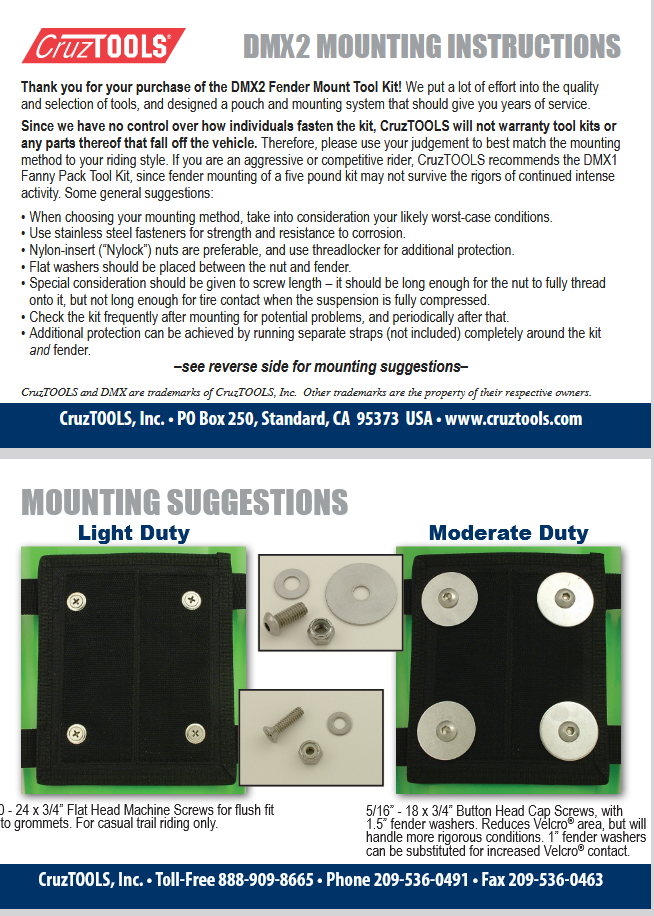 Cruztools DMC™ Fender Pack tool kit zestaw narzędzi montowanych na błotniku do motocykli terenowych, quadów, UTV