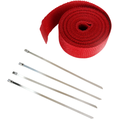 W zestawie cztery opaski zaciskowe ze stali nierdzewnej, do mocowania taśmy na kolektorze wydechowym.