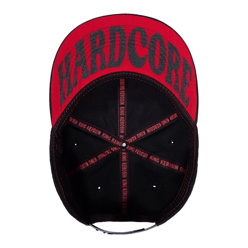 Czapka z płaskim daszkiem King Kerosin nie pozostawia wątpliwości, kto tu rządzi. Z dominującą naszywką z przodu zrobisz wrażenie, o którym z pewnością nie będzie się mówiło szeptem. Czerwono-czarna czapka z kontrastowymi przeszyciami, nadrukiem „HARDCORE” pod daszkiem i zapięciem na zatrzask,emanuje hardkorowym charakterem od przodu do tyłu. Każdy, kto ceni jasny język, pokocha tę czapkę.
