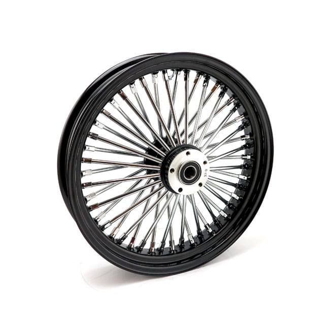 SF (Single Flange). Ready to run black plated wheel that is built with 48 chrome plated 8mm diameter steel spokes & nipples, a steel rim and an aluminum hub. Wheel is pre-sealed and suitable for tubeless tires. 1" ID roller bearings are pre-installed and the brake rotor/pulley flanges come in H-D style mount pattern with a 56mm center. Front wheel for single disc is 5/16-18 UNC threaded. Total hub width is 16cm. Note: Wheels come with approval for the years and models as stated, use in other model years or custom applications will void approval.