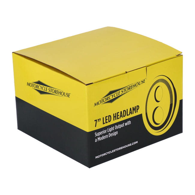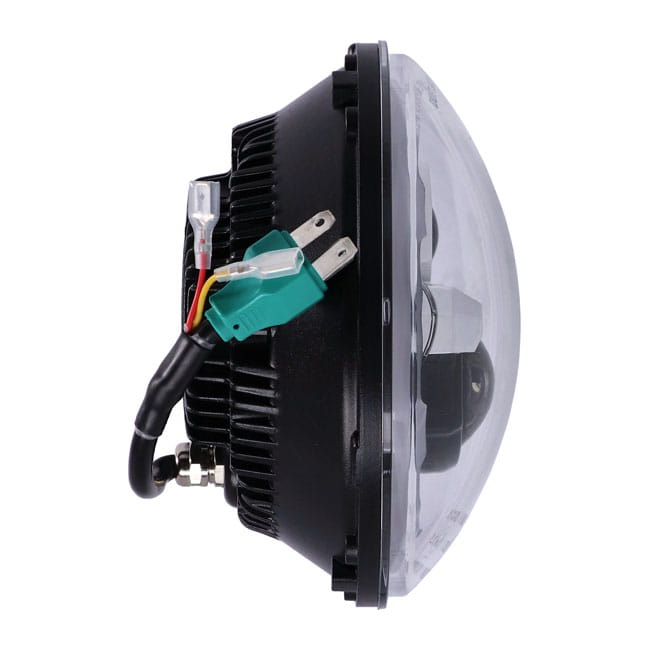 ECE & DOT approved. Black bezel. With a white halo ring/position light. Economical high/low beam LED conversion head lamp unit to replace the stock H4 unit. LEDs are an improvement at all levels when compared to H4 lighting and offer more effective and whiter light at 6000K, much better reliability and less amperage draw. - White / amber switchable halo-ring/position light - Unit comes complete with wiring with a 3-prong plug that is identical to a standard H4 light bulb, allowing a plug & play conversion - Compatible with left side (UK) & right side (EU) driving - 174.5mm (6.87") diameter - 104mm (4.09") deep - 6500K color temperature - 12-Volt DC - Passing beam 13.3W - Driving beam 22.9W - Halo ring/position light 72 LEDs 4.1W - Approval E24*149R00/04*0294*00