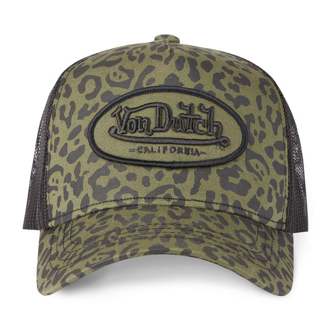 Damska czapka w panterkę Von Dutch Leopard cap khaki truckerka pin up w panterkę