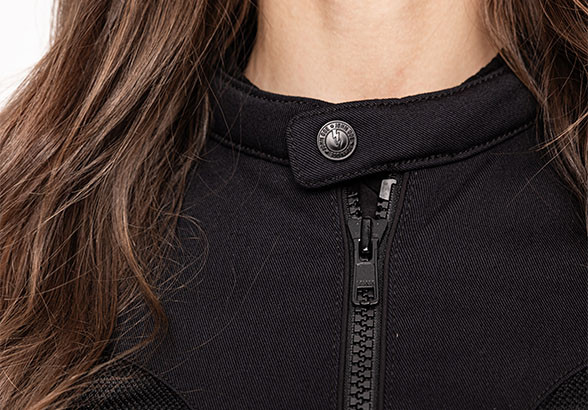 - Okrągły kołnierz – wzmocniony guzikiem YKK.