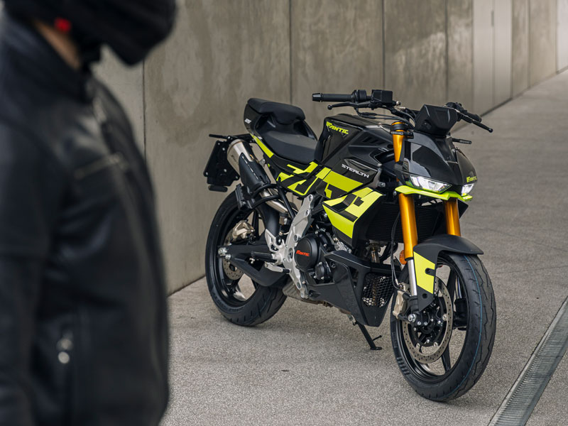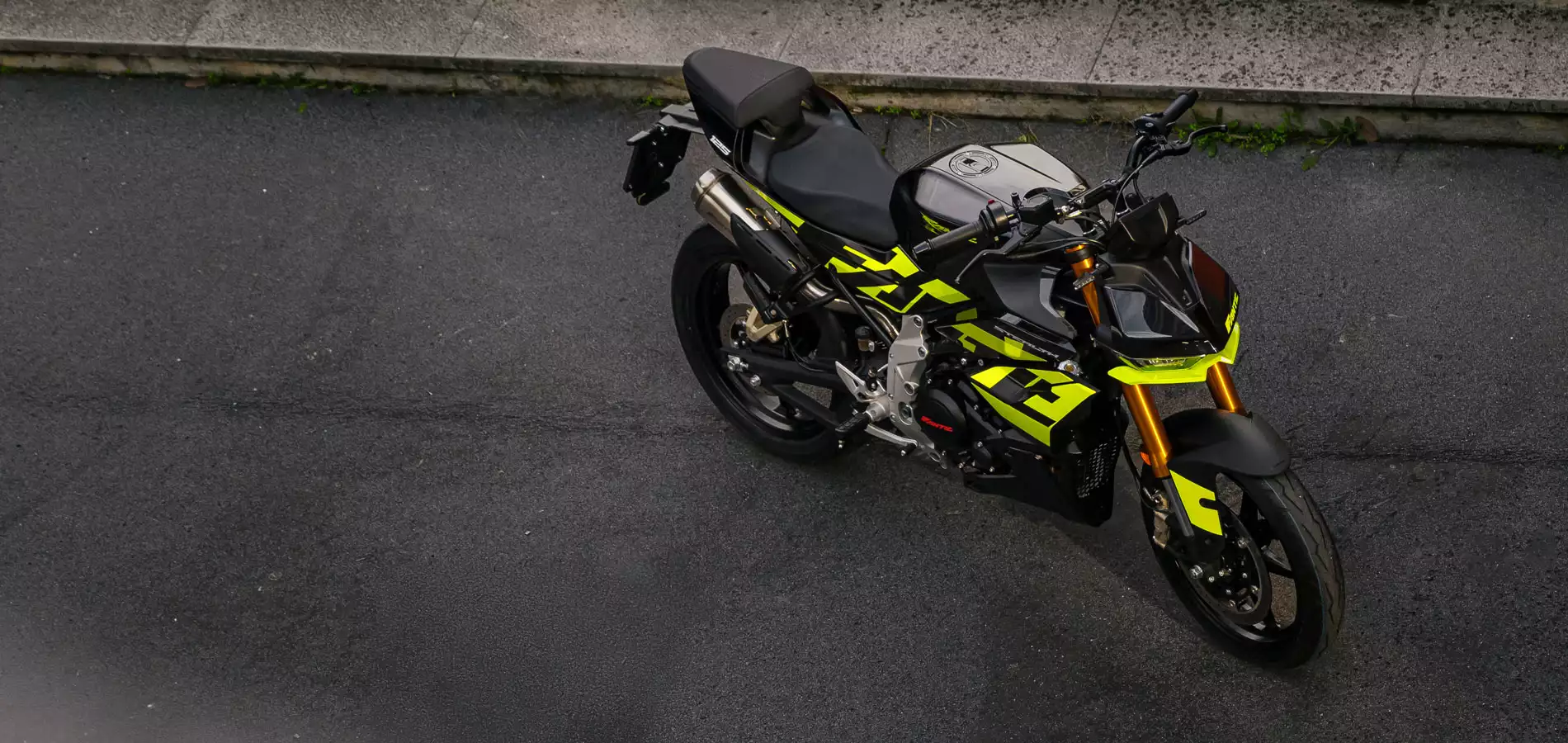 Każdy element został umiejscowiony tak, aby zoptymalizować równowagę, kontrolę, stabilność i komfort, zarówno podczas sportowej jazdy, jak i codziennego użytkowania. Zbiornik paliwa znajduje się blisko środka ciężkości motocykla, co zapewnia równomierne rozłożenie masy. Układ wydechowy działa na tej samej zasadzie: tłumik, umieszczony wysoko, redukuje wpływ masy bez uszczerbku dla lekkości, estetyki i osiągów, a komora rozprężna, umieszczona nisko, obniża środek ciężkości, poprawiając stabilność i przyczepność, szczególnie podczas przyspieszania i pokonywania zakrętów. Aby zagwarantować najlepsze wrażenia z jazdy, motocykl został wyposażony w regulowane dźwignie hamulca i sprzęgła, a także dźwignie hamulca i zmiany biegów z dwoma regulowanymi pozycjami. Elementy te pozwalają na w pełni spersonalizowaną konfigurację, zaprojektowaną tak, aby spełnić potrzeby każdego kierowcy i zapewnić optymalny komfort i kontrolę w każdej sytuacji.