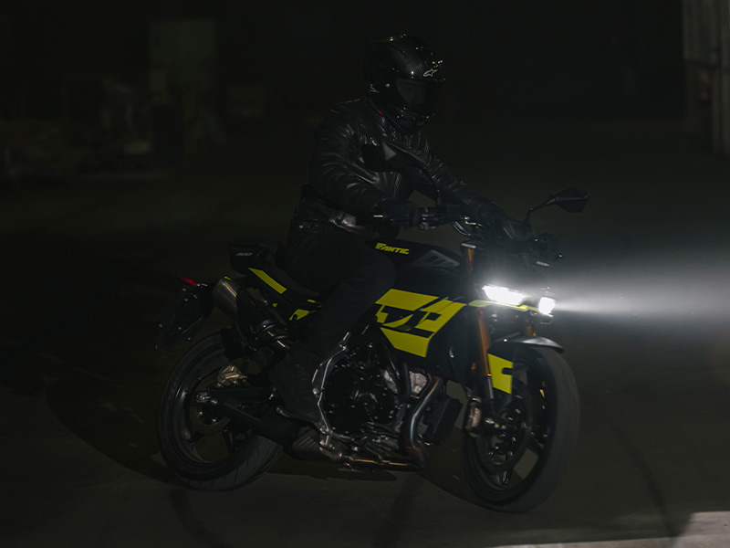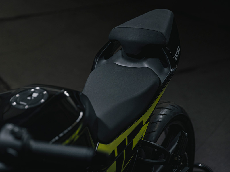 Konfiguracja z jednym siedzeniem, uzyskana poprzez demontaż siedzenia pasażera i podnóżków, nadaje motocyklowi sportowy i wyrazisty design. Dbałość o szczegóły, obniżona masa i optymalny rozkład masy sprawiają, że jest to idealny motocykl dla osób poszukujących ekskluzywności i osiągów. Dzięki agresywnemu wyglądowi i zwinniejszemu, bardziej responsywnemu prowadzeniu staje się idealnym towarzyszem dla motocyklistów o sportowym zacięciu. Motocykl wyróżnia się podwójnymi reflektorami Full LED, zarówno światłami mijania, jak i drogowymi, łączącymi wydajność oświetlenia z nowoczesnym designem. Ta zaawansowana technologia zapewnia doskonałą widoczność w każdej sytuacji, nadając jednocześnie motocyklowi charakterystyczny, futurystyczny wygląd. Idealne podczas wypraw lub codziennych dojazdów do pracy, światła Full LED sprawiają, że każda jazda jest wyjątkowa. Przednie i tylne kierunkowskazy również wykorzystują technologię LED, zapewniając szybsze oświetlenie, niższe zużycie energii i nowoczesny wygląd, spójny z designem motocykla.