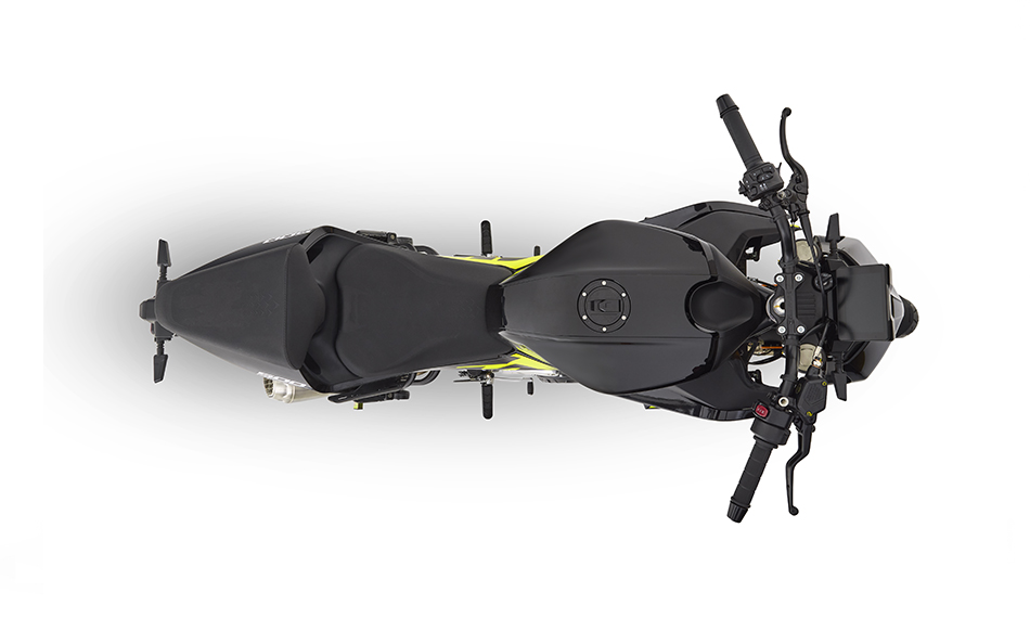 Każdy element został umiejscowiony tak, aby zoptymalizować równowagę, kontrolę, stabilność i komfort, zarówno podczas sportowej jazdy, jak i codziennego użytkowania. Zbiornik paliwa znajduje się blisko środka ciężkości motocykla, co zapewnia równomierne rozłożenie masy. Układ wydechowy działa na tej samej zasadzie: tłumik, umieszczony wysoko, redukuje wpływ masy bez uszczerbku dla lekkości, estetyki i osiągów, a komora rozprężna, umieszczona nisko, obniża środek ciężkości, poprawiając stabilność i przyczepność, szczególnie podczas przyspieszania i pokonywania zakrętów. Aby zagwarantować najlepsze wrażenia z jazdy, motocykl został wyposażony w regulowane dźwignie hamulca i sprzęgła, a także dźwignie hamulca i zmiany biegów z dwoma regulowanymi pozycjami. Elementy te pozwalają na w pełni spersonalizowaną konfigurację, zaprojektowaną tak, aby spełnić potrzeby każdego kierowcy i zapewnić optymalny komfort i kontrolę w każdej sytuacji.